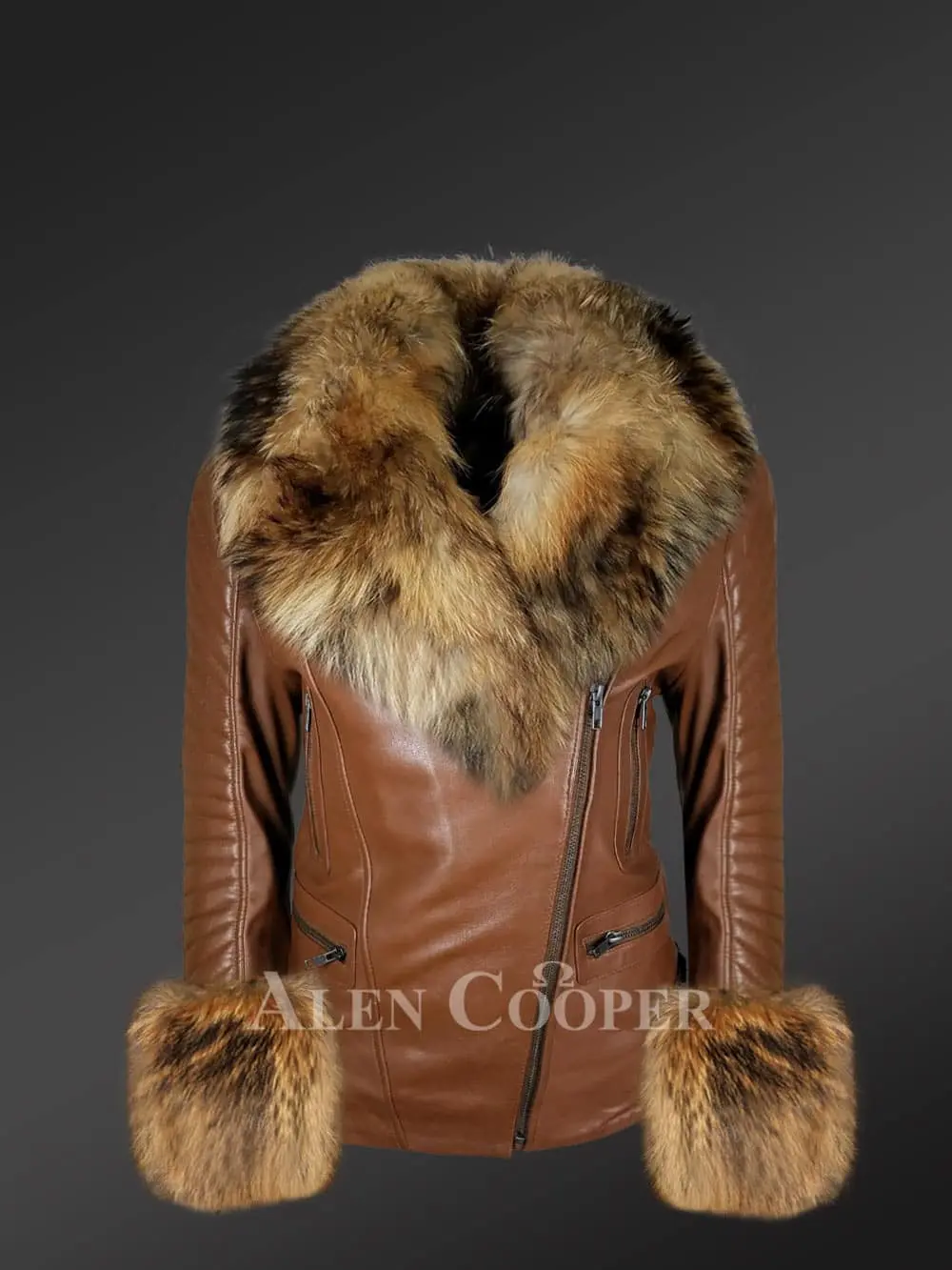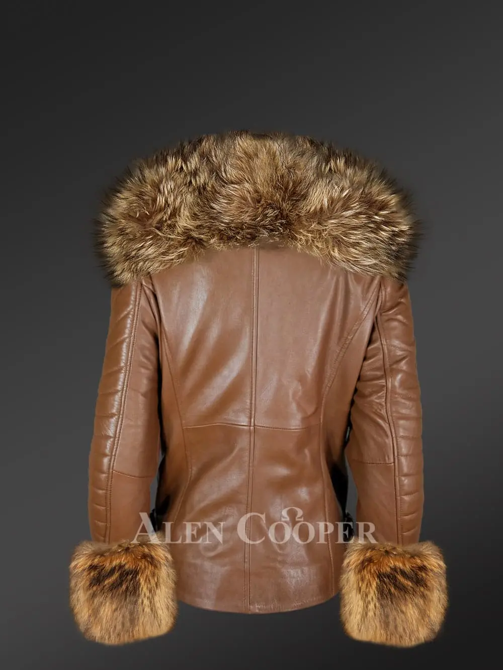Genuine Tan Leather Jackets For With Fur on Collar & on Cuffs