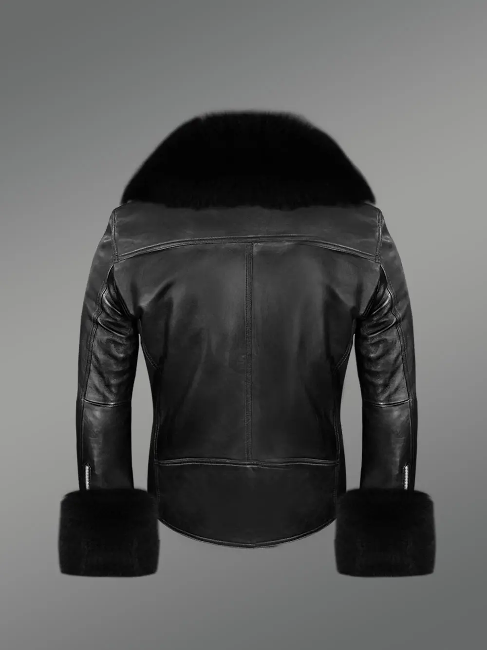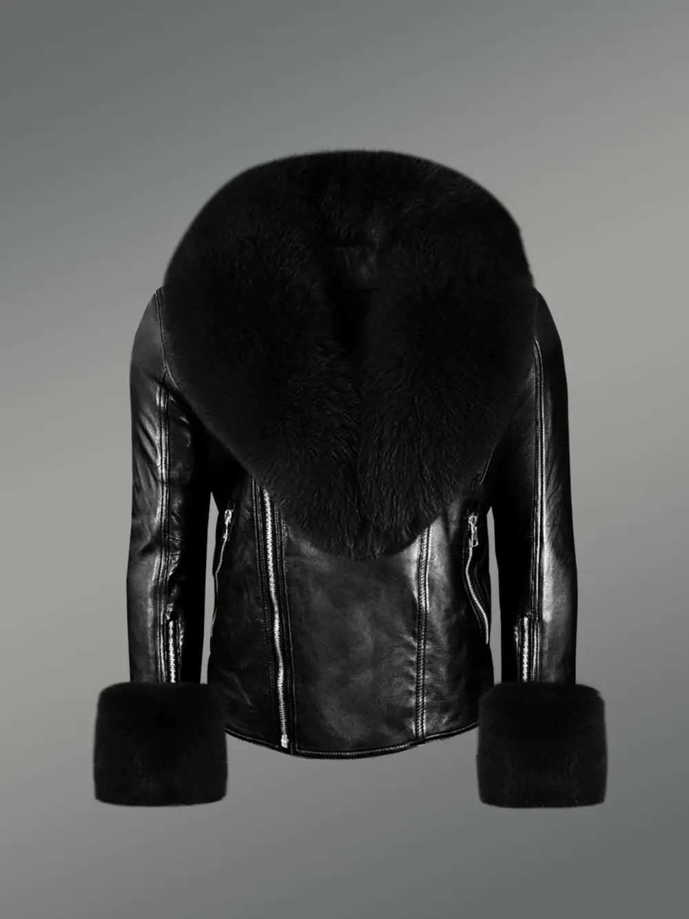 Biker Jacket of Leather with Fur Accentuating the Cuffs and Collar