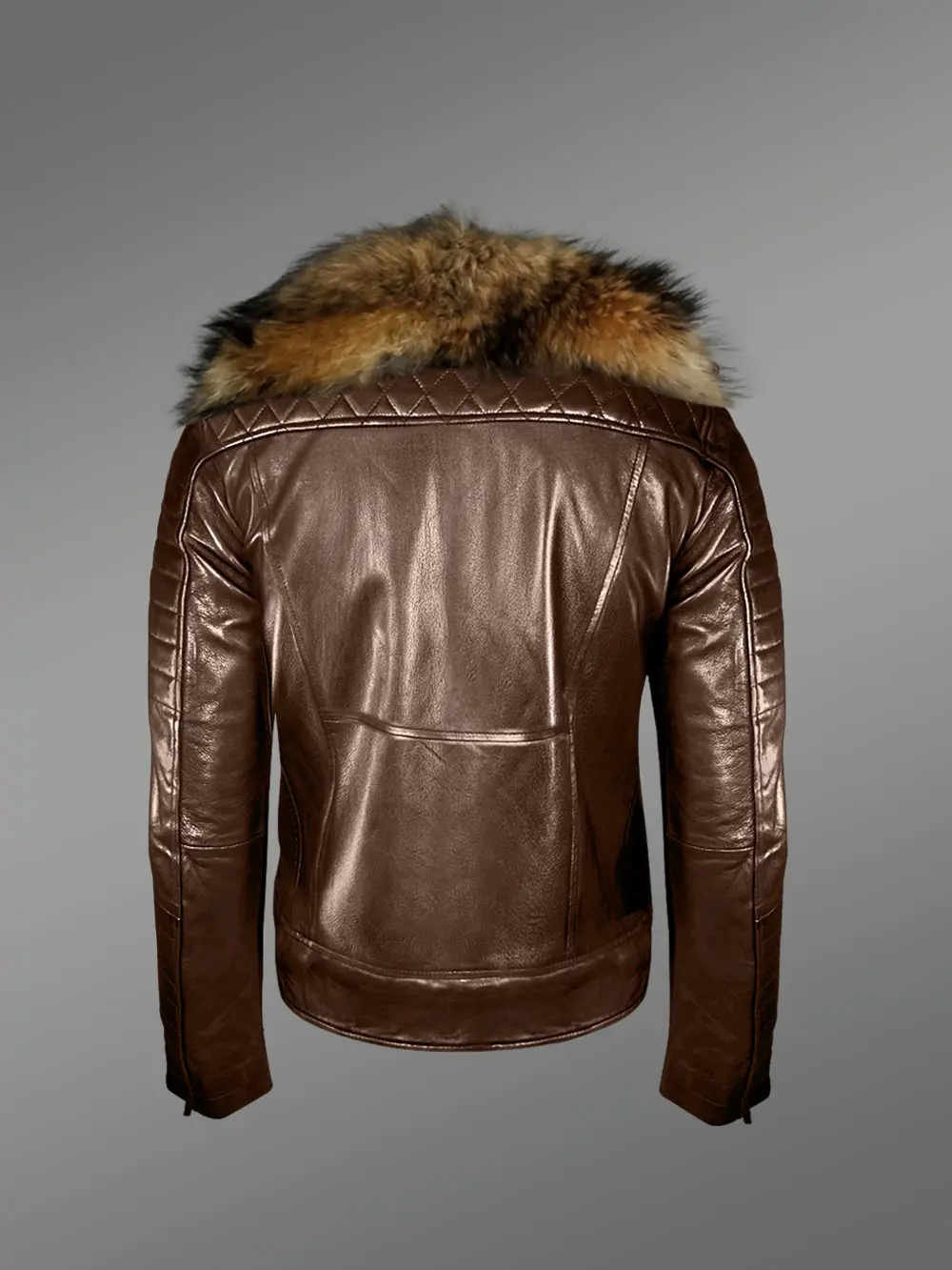 The modish looks of this biker leather jacket with fur collar can elevate one’s appearance. Therefore, it’s befitting for formal meetings as well as casual and social ceremonies in winter. Its streamlined looks also make it suitable for bike trips. It’s designed with quilted patterns on the cuffs which also covers the forearms. This feature stylizes the winter-wear alongside making it significantly comfortable to wear.