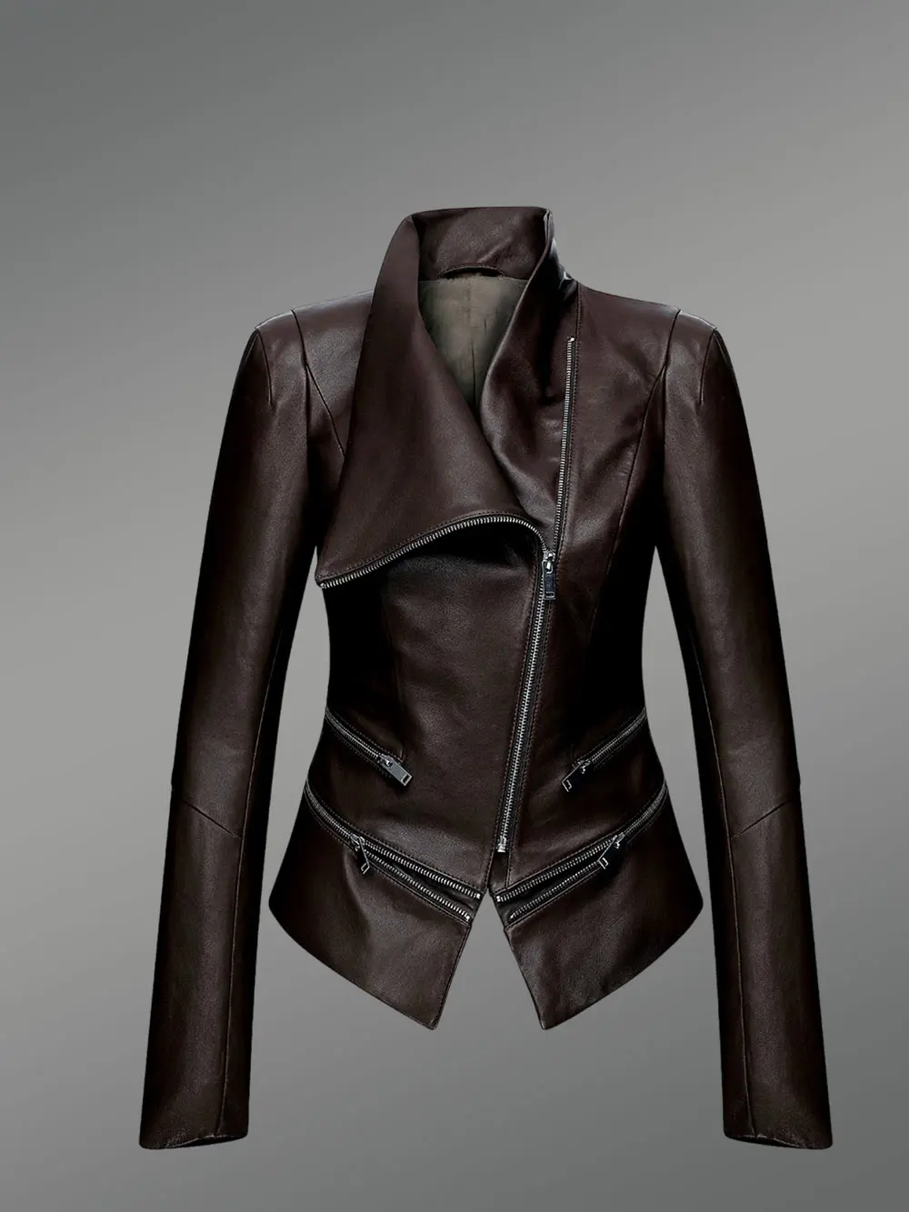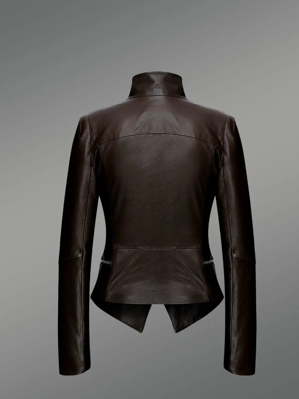 Authentic lamb leather with a top-grade full Aniline Finish preserves its glitzy glaze. The texture reflects an ultra-smooth impression. More glory is added by the single-toned uniform brown shade styling aspect. Thus, the wear is appropriate for all women and a perfect addition to any underlying outfit. Skilled tailoring lends an overall slim structured-fit feature, which enhances the smart look and thereby also compliments the feminine physique.