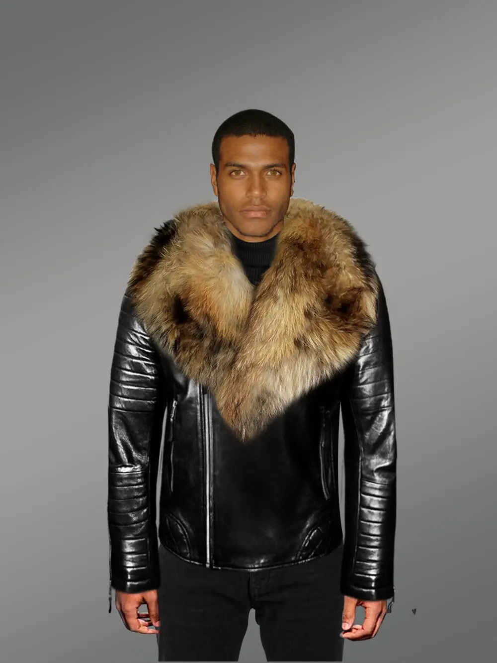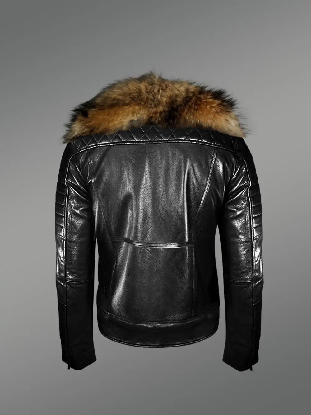 Black Biker Jacket with Raccoon Lapel – Be a Trendsetter