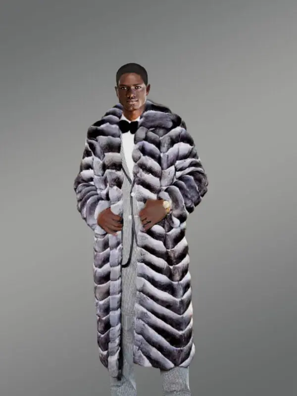 Every man will want to pose in the chinchilla fur long coat. It has a remarkable allure owing to its knee-length aspect. Value for money, this casual outerwear is simple to slip on for last-minute outings and also makes a neat appearance. All that can be apparent is its grey and white glamorizing velvety glaze, and the iconic wear can be wrapped with any underlying clothing.