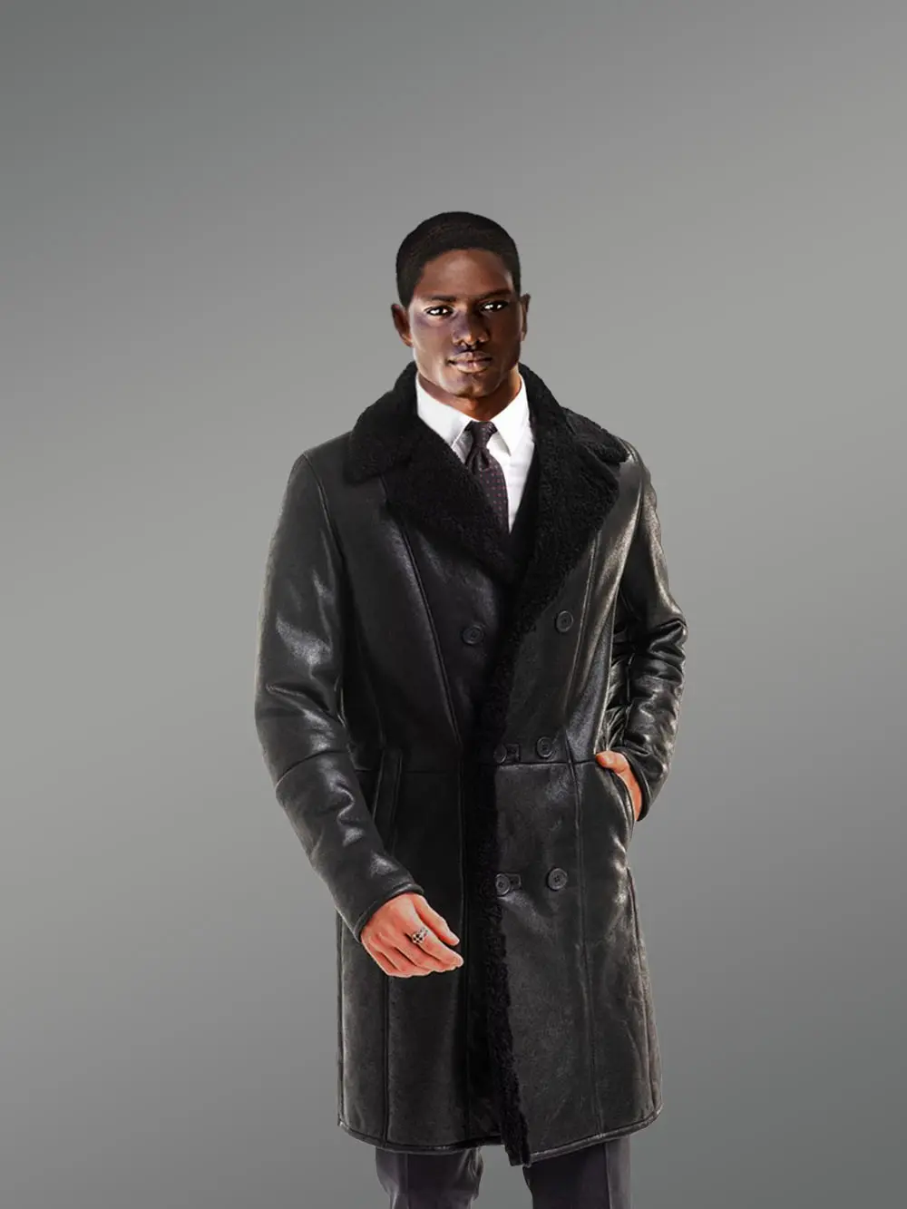Classy Shearling Long Coat With Nappa Finish For Men