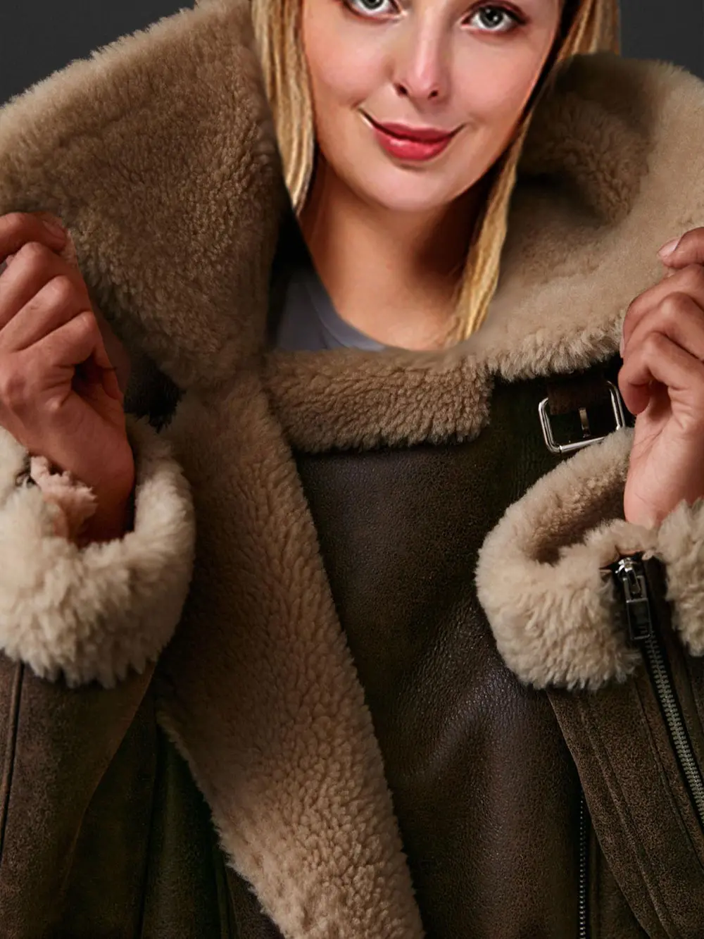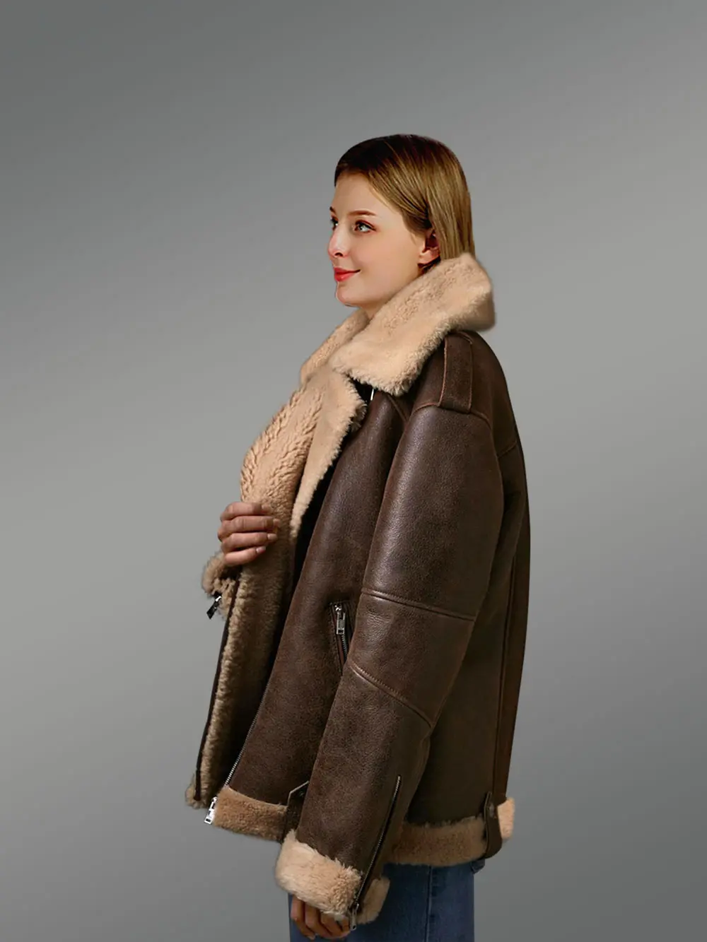 Coffee Brown Sheepskin Shearling Jacket for Women