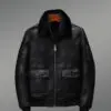 The inner woollen layer of shearling is flipped and exposed at the collar of the plush aviator shearling jacket. It makes the entire outlook of the product sophisticated. Made of original pelts of shearling, the product line is smartly integrated to form a stunning jacket.