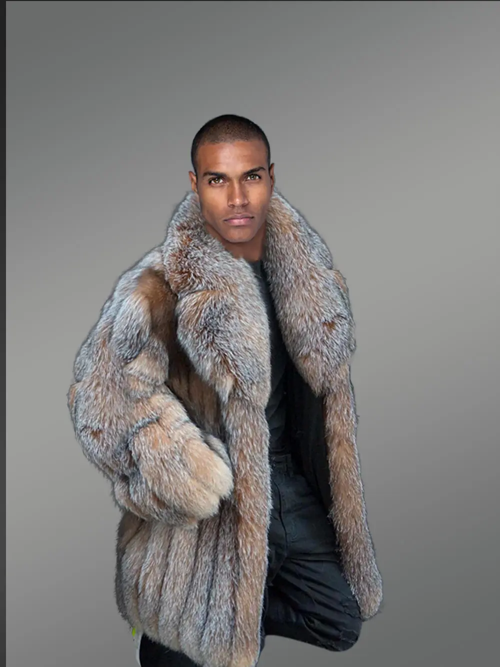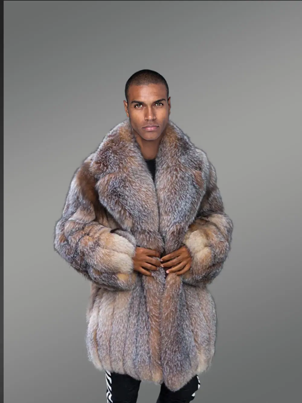 This Jacket for Men is made of Premium Quality Silver Fox Pelts of SAGA from Finland. The winter wear is of Natural Black Colour gives a Silver appearance because of the White tipped hairs, is highly luxurious. Parallel Stripped design is making the outfit more appealing. This Waist Length product has thick, long, guard hairs, which is soft and supple in texture. This Jacket has a wide Fold-Out Collar which is fluffy. With Full Sleeves and a Fleecy look, it fulfils all comfort that a person requires in strong windy days. The waist level Side Pockets are quite spacious and provides the required warmth while shivering. With Concealed Hook Fasteners as Closure the outfit is fully lined with Finest Quality Satin Lining has a ravishing finish with a loose-fit.