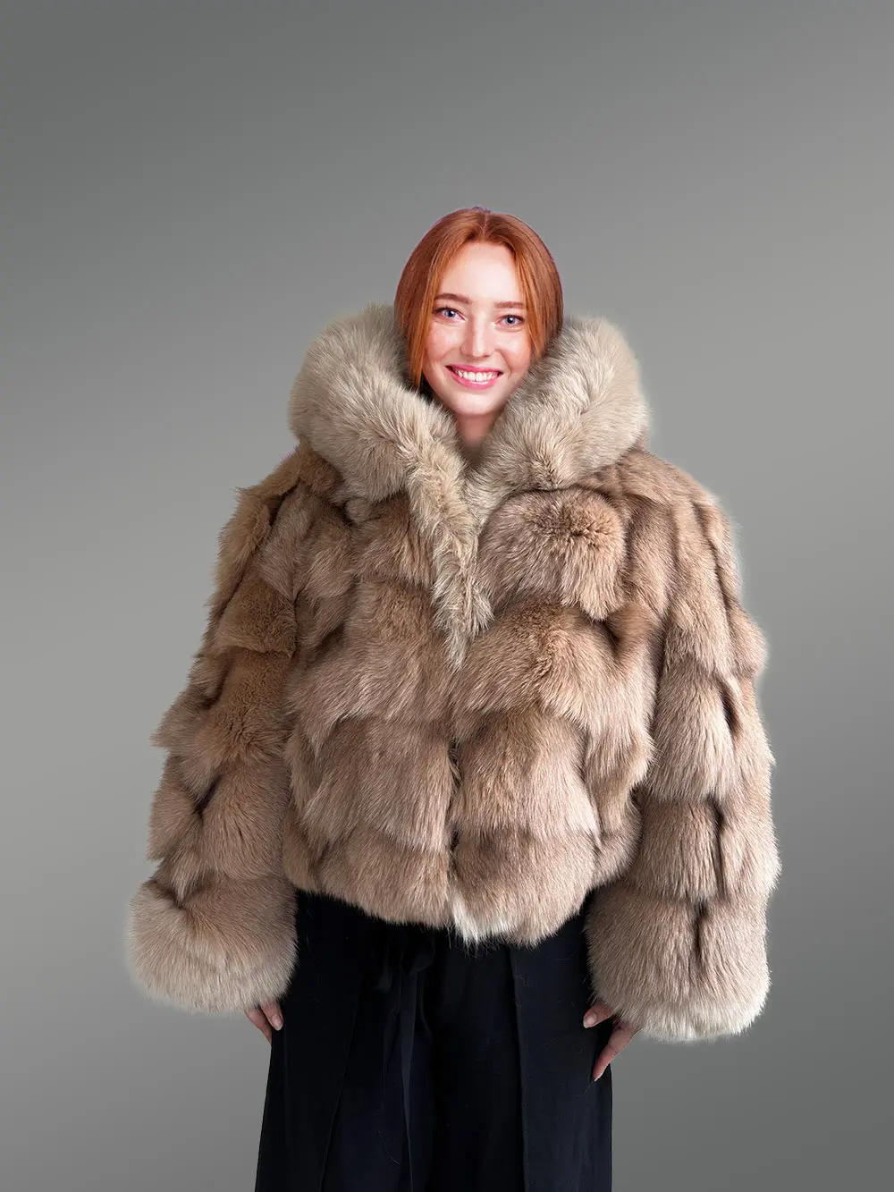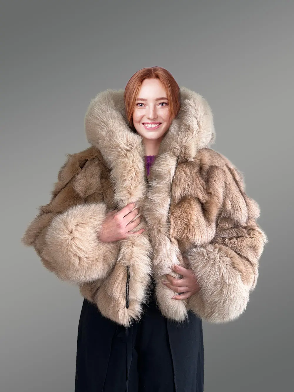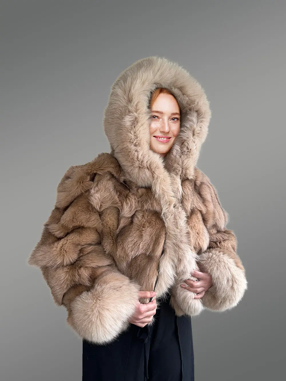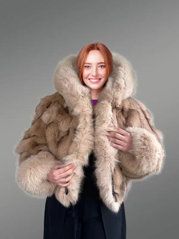 Womens Crop Jacket of Fox Fur with Magnificent Qualities
