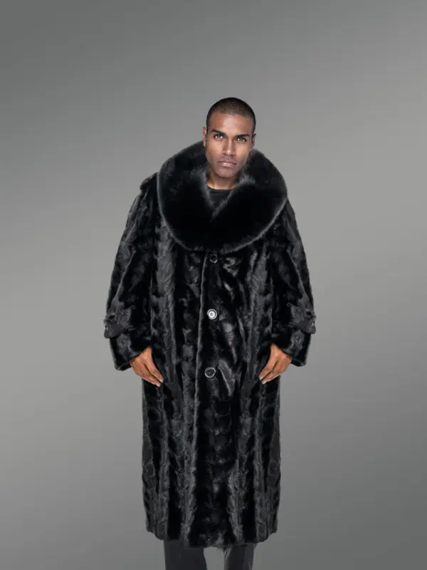 This overcoat has been expertly designed by efficient craftsmen keeping in mind the recent fad for men. It has been conscientiously crafted from mink paws as a stylish thermal winter wear. Its voluminous mink fur provides adequate protection against harsh winter conditions. The intrinsic body is lined with pure satin for added comfort to the skin. It has a stunning black color and a full-length body for maximum warmth and comfort. It effortlessly suits men with different proportions.
