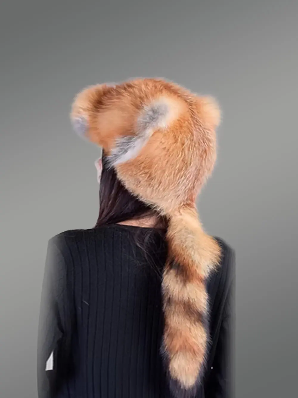 Full Ref Fox Fur Hat with Tail Back