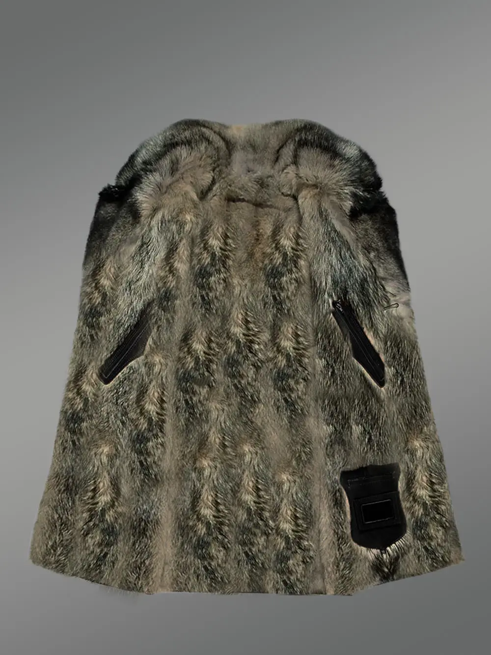 Exterior part of this long coat is designed using sheepskin while the fur from Silver fox covers the interior. One can enjoy the unparallel warmth and comfort resulting from this unification after wearing this outfit. With long guard hair and dense undercoat of silver fox, this coat feels markedly pleasant and warm to wear. At the same time, sheepskin offers outstanding insulation against the cold.