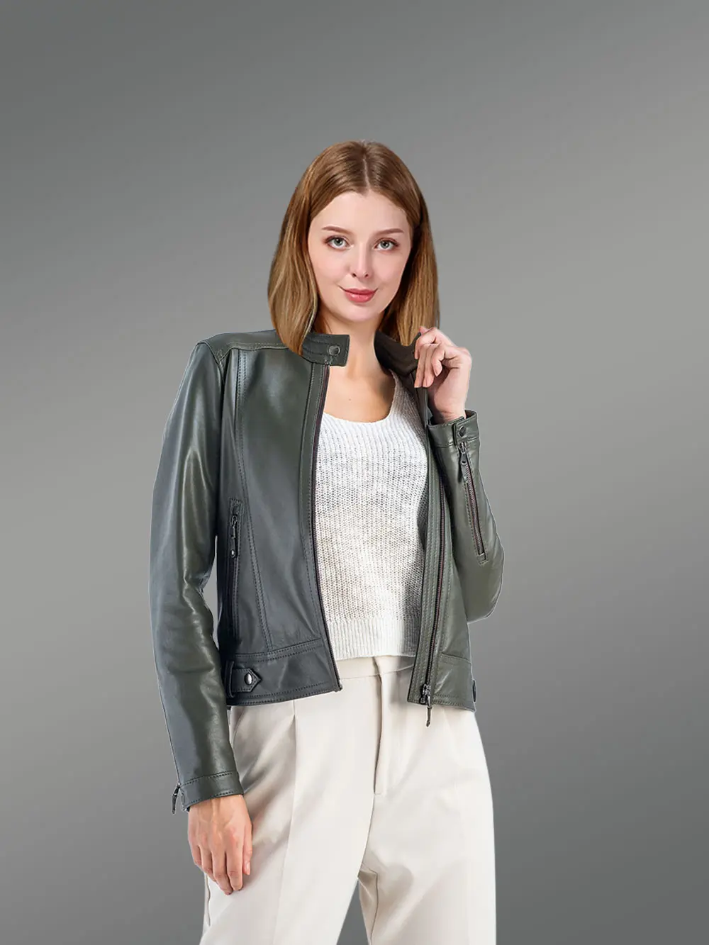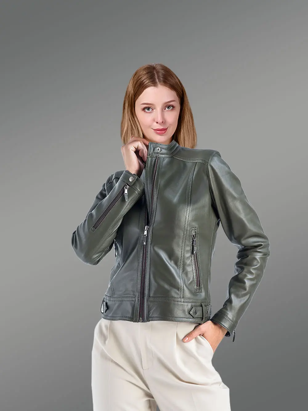 Genuine Leather Jackets in Olive for Tasteful Ladies