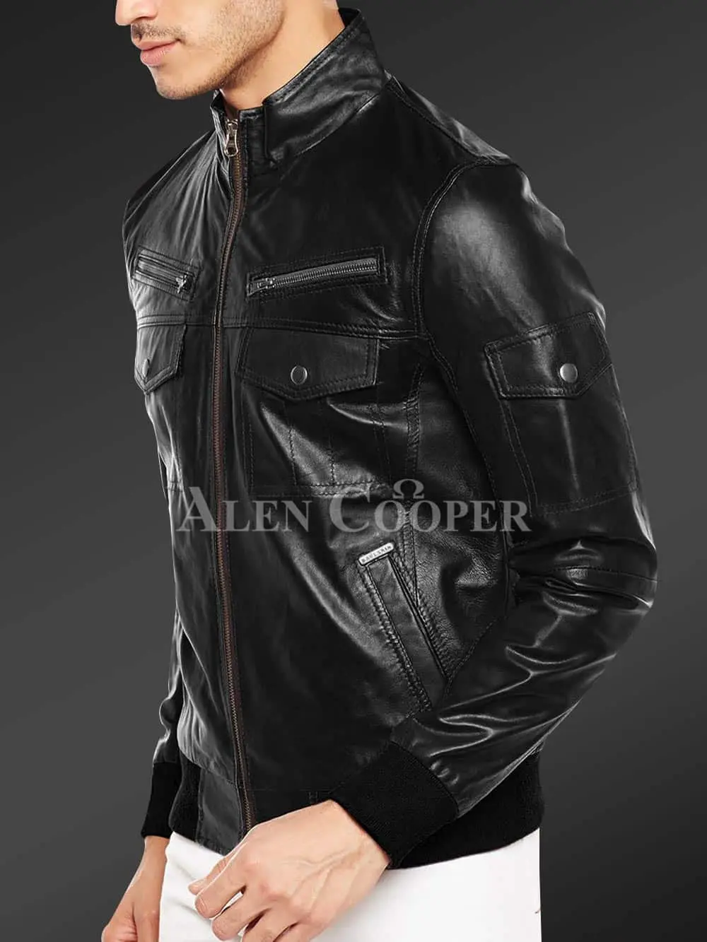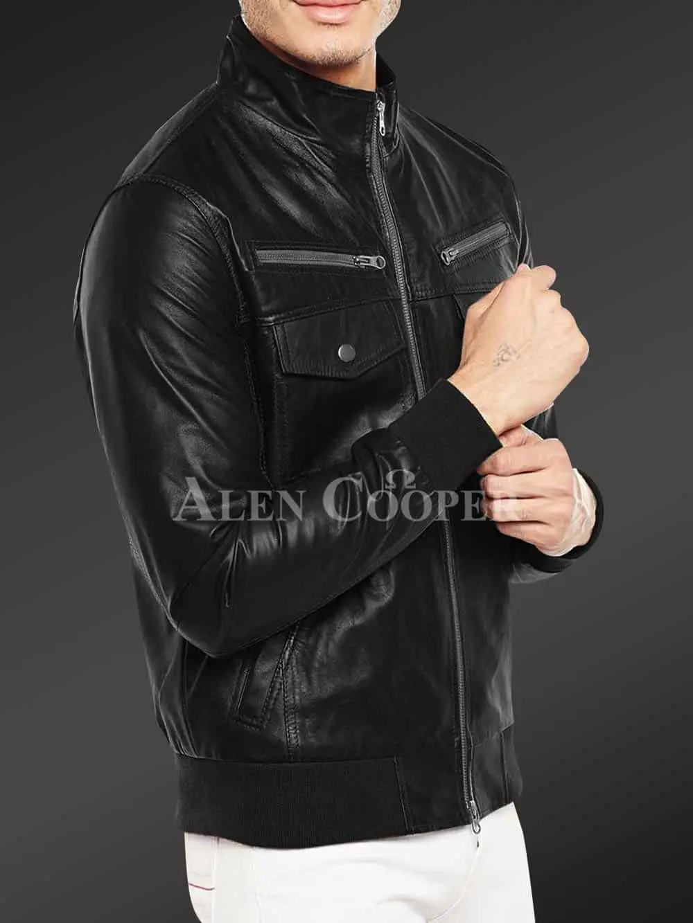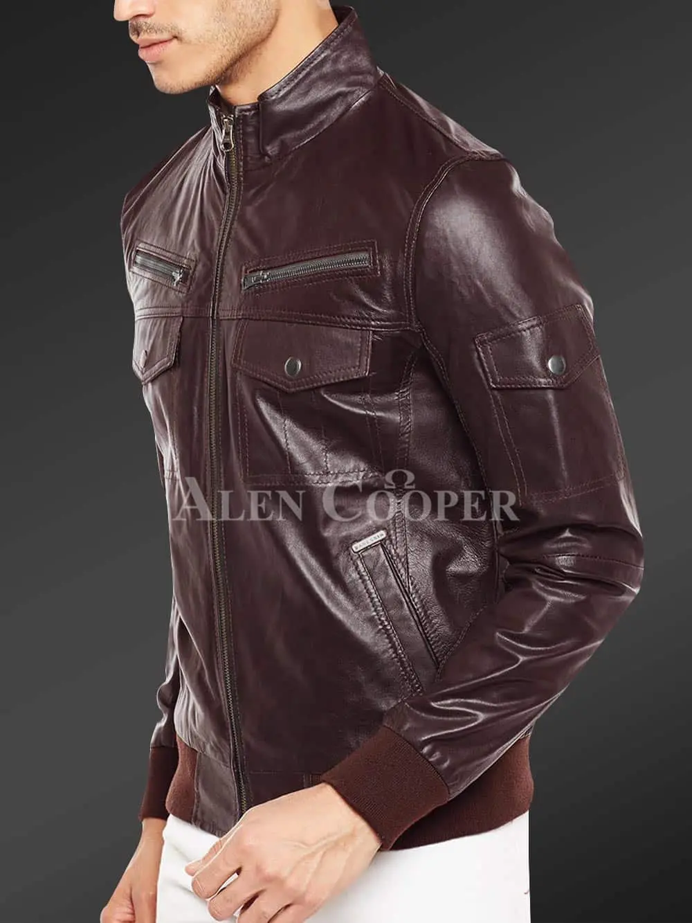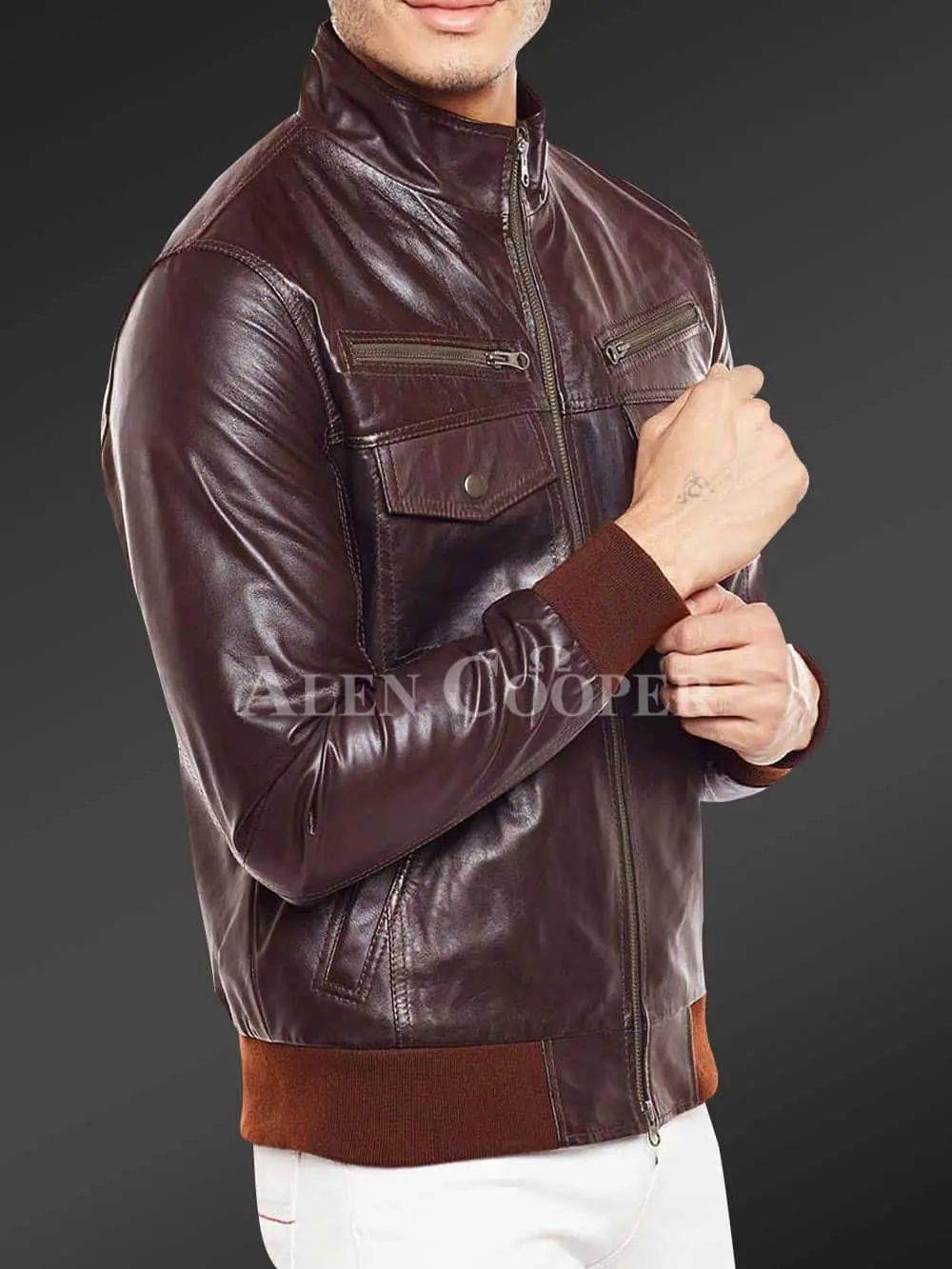 Description: A study biker look is waiting for you! This brown real leather jacket belongs to Furrik’s latest affordable leather jacket collection 2022. It has stylish small collar, 2 patch pockets, slim side pockets, and long sleeves with stylish elasticized zipper closure as its main attributes. Its super soft and smooth texture, amazing warmth capacity, and elasticized jacket ending are in alignment making it a ‘must-try’ winter jacket option this season.