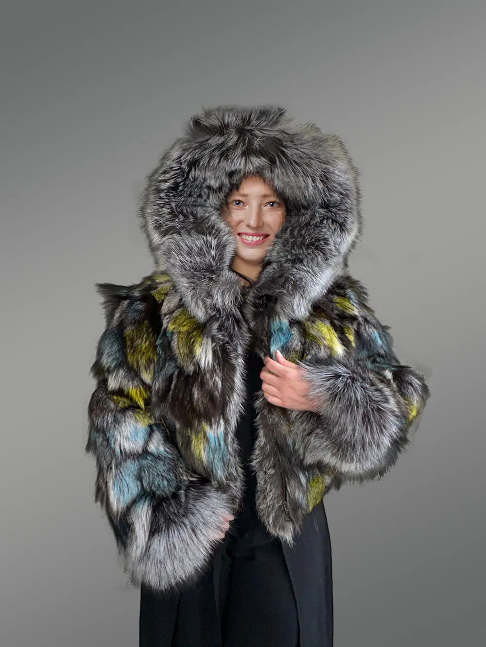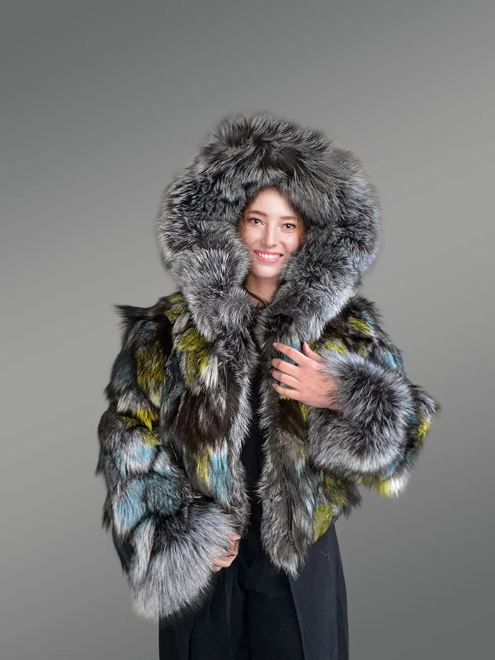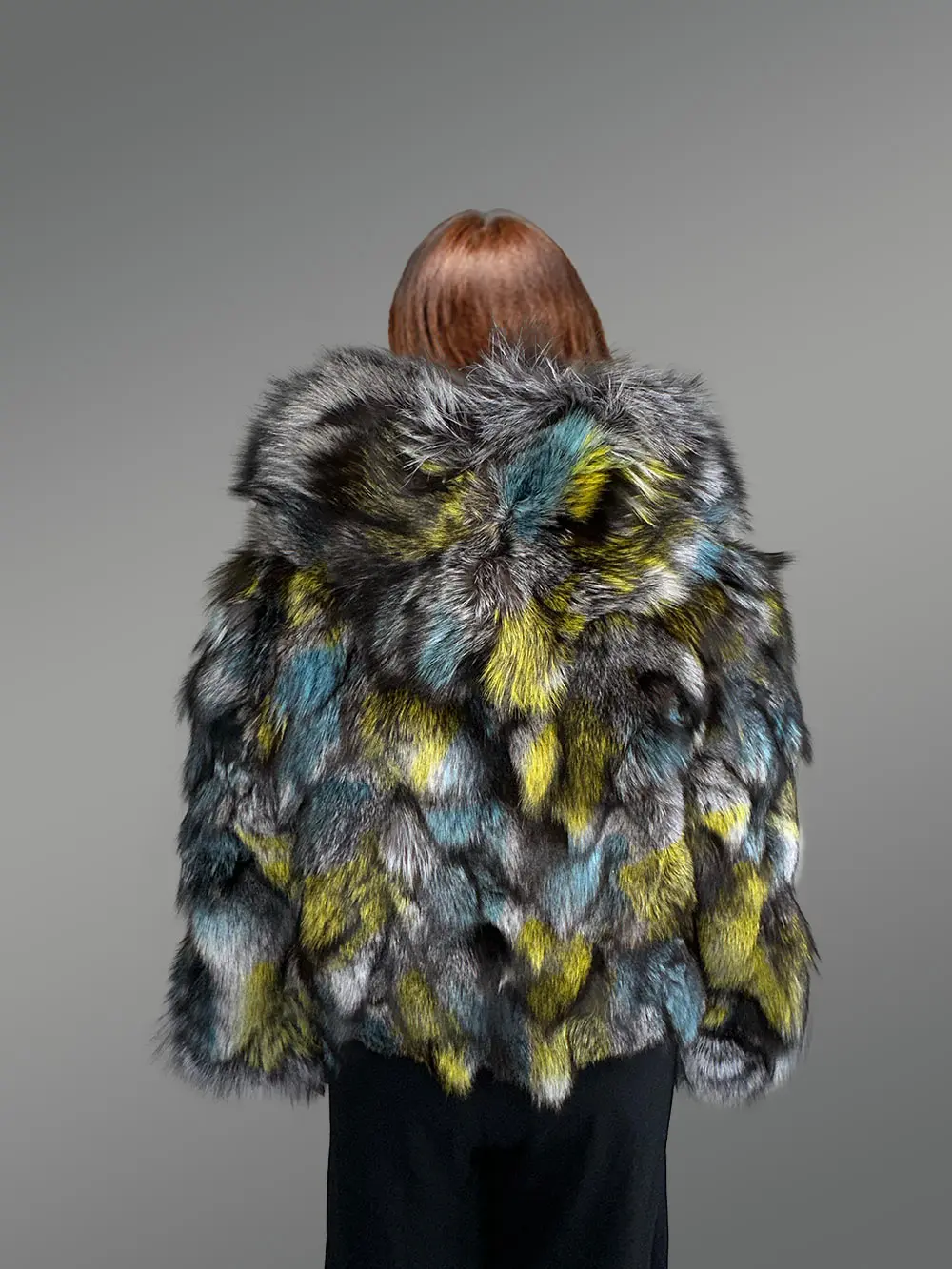 - Magnificent jacket of Silver fox fur handcrafted using multi-colored pelts