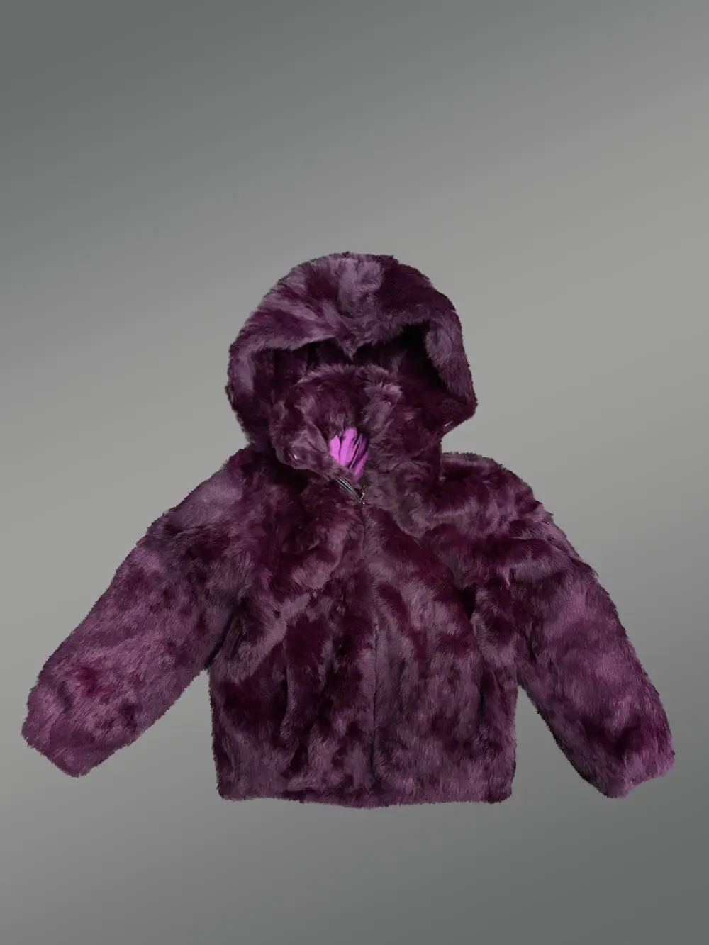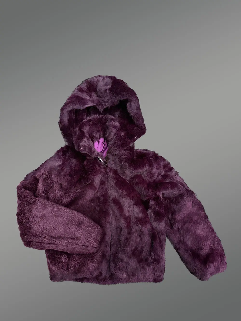 Kids’ Purple Rabbit Fur Bomber Jacket with Hood