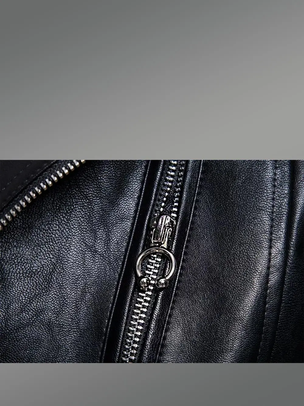 Designers have used breathable and lightweight lambskin leather to handcraft an outfit which offers comforting warmth to the wearer. The satin lining with velvety texture certainly adds to this pleasant feel. The asymmetrically set metal zipper is another convenient feature of this trendy jacket. It also adds an element of style to this jacket with a designer pull and has chrome finish for longevity.