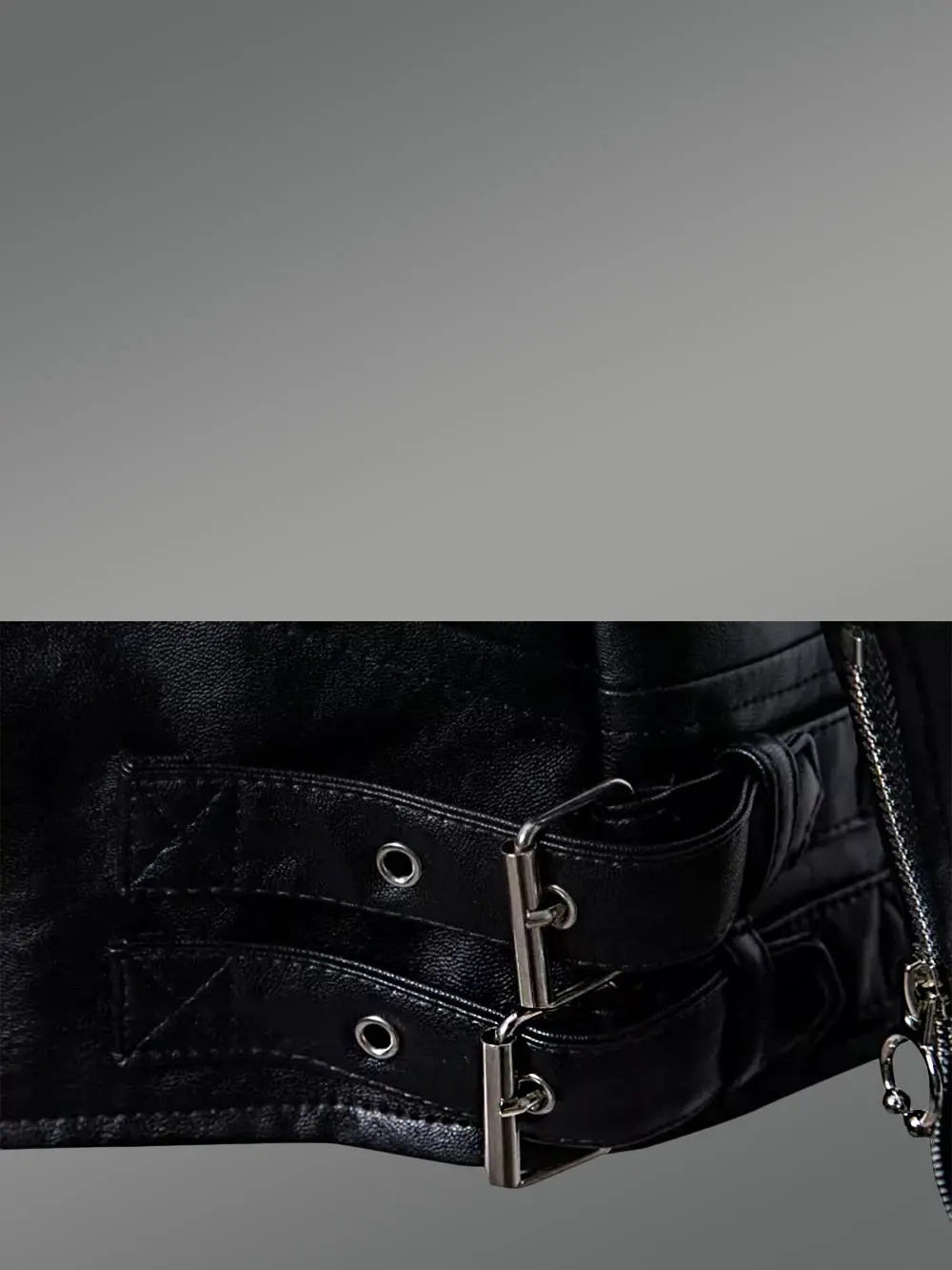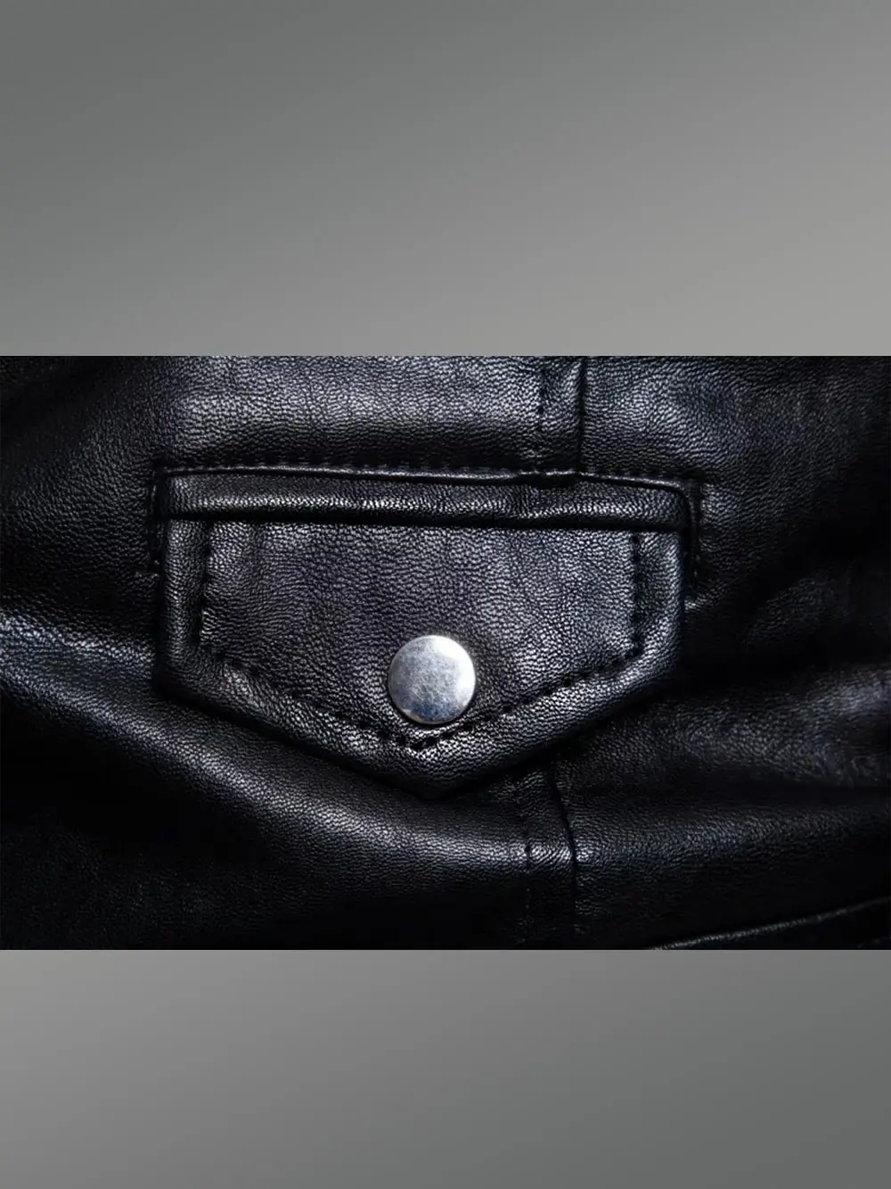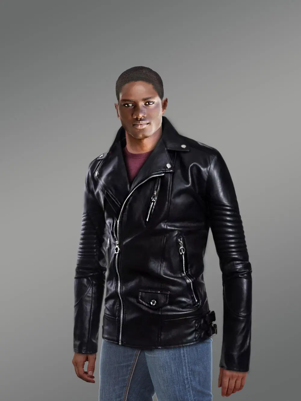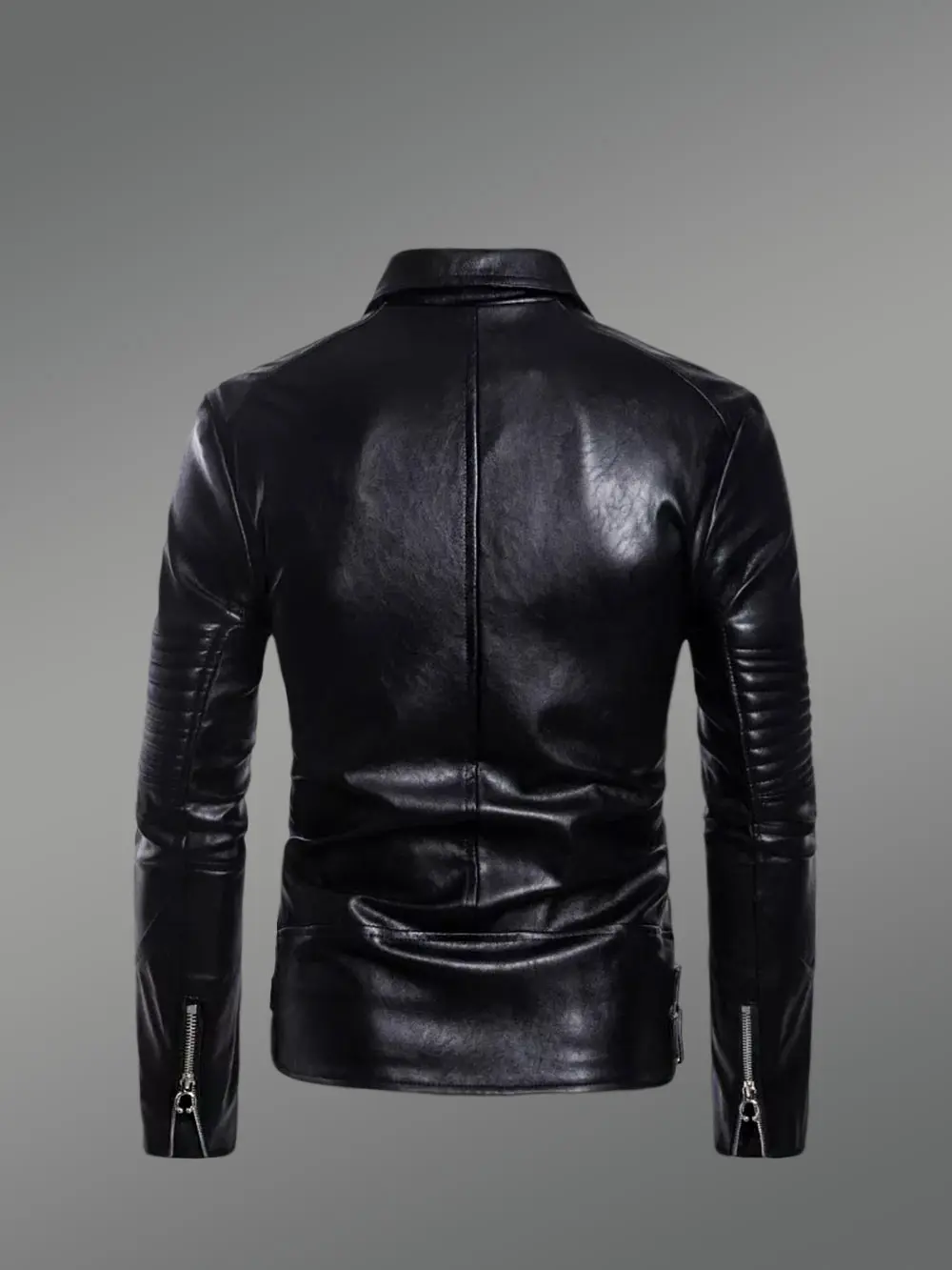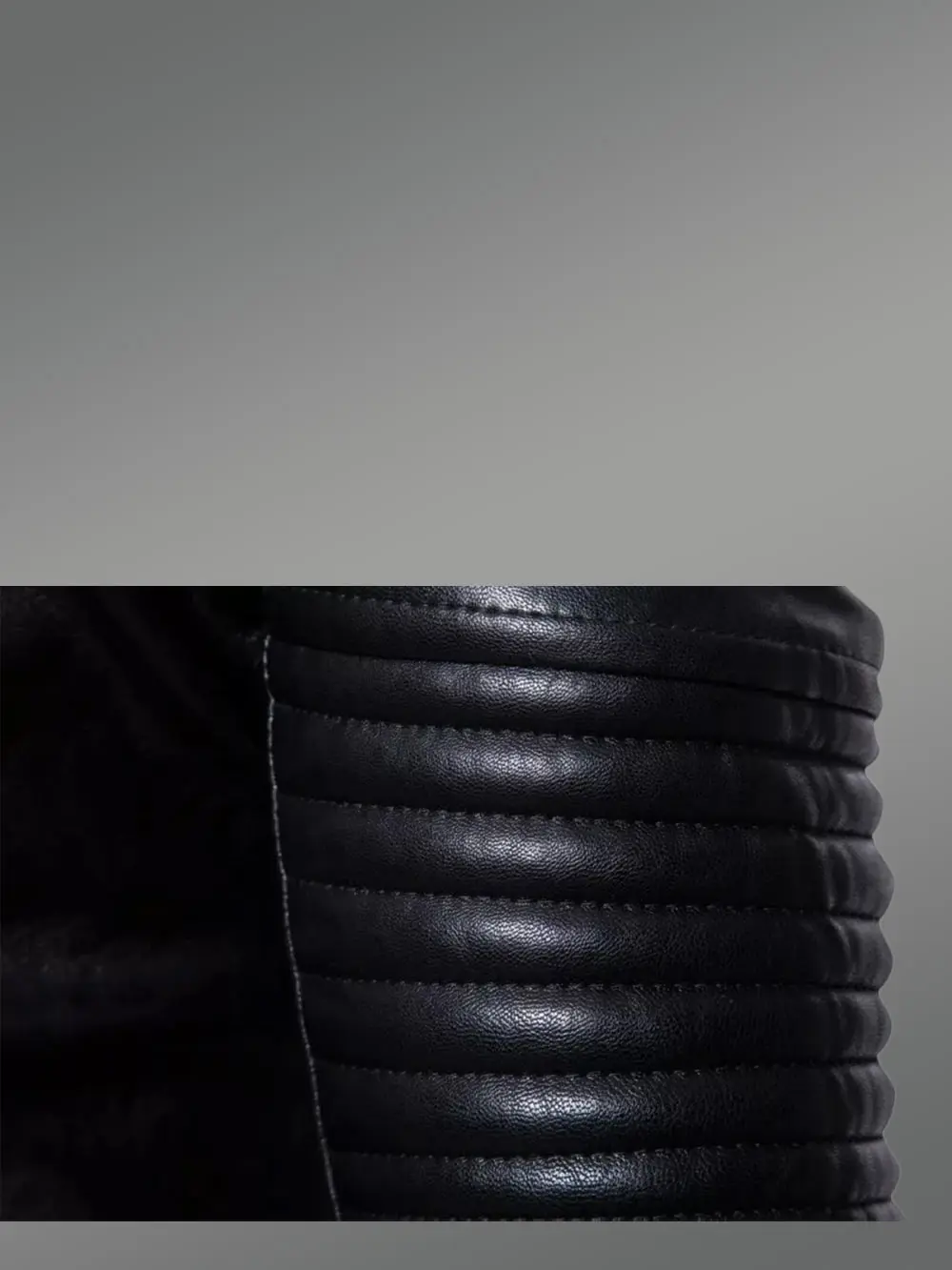Leather Biker Jacket with Quilt Details on Sleeves Exudes Rugged Charm