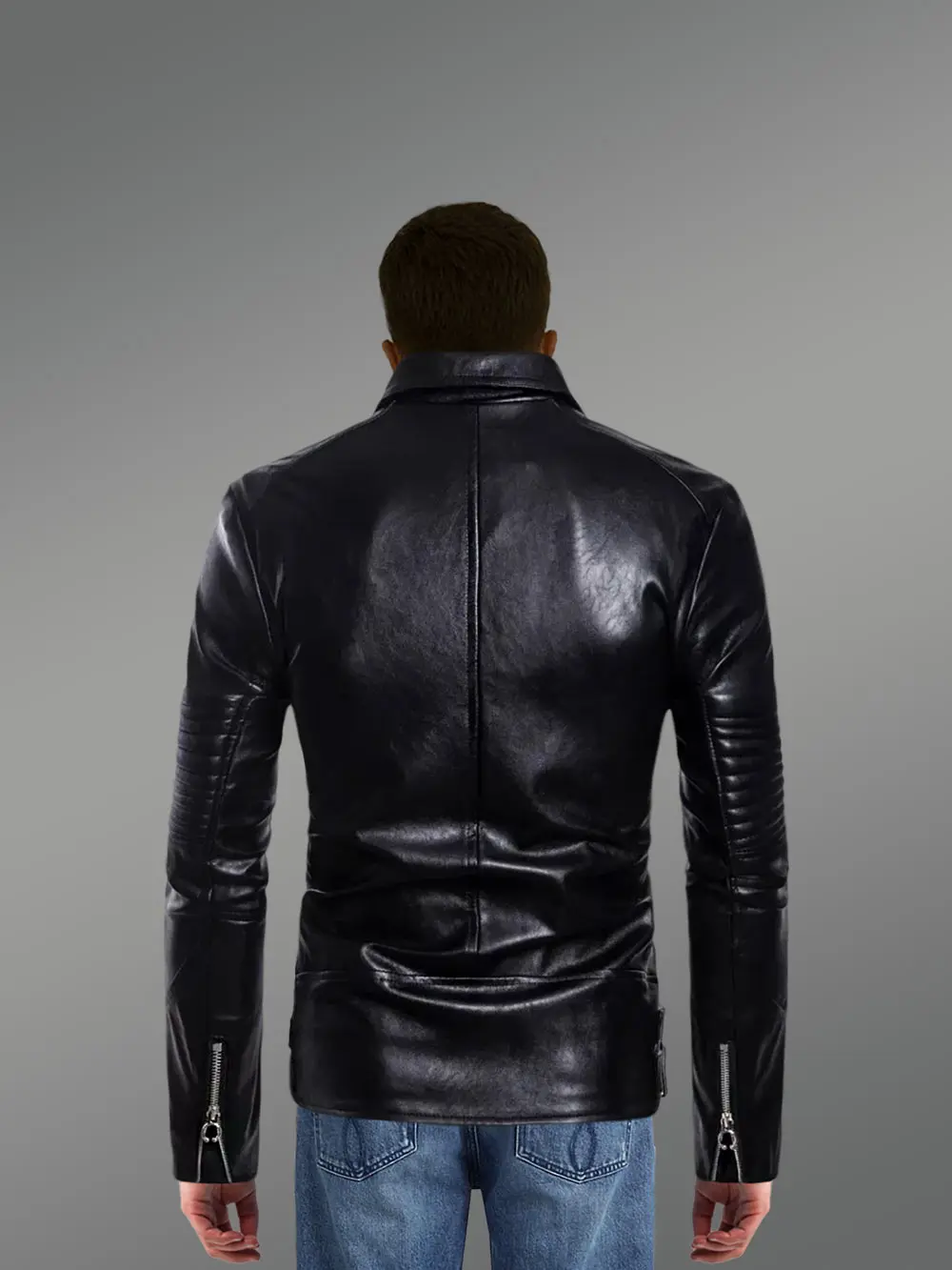 This biker jacket is designed to fit snugly to the body and arms. Furthermore, the elasticity of lambskin leather allows it to properly conform to one’s body shape. This fashionable outfit also brings many convenient features to the users. It has notched lapel of lambskin leather with snap buttons to comfort the neck. Edgy look of this lapel indeed adds character to this outfit’s overall appearance.