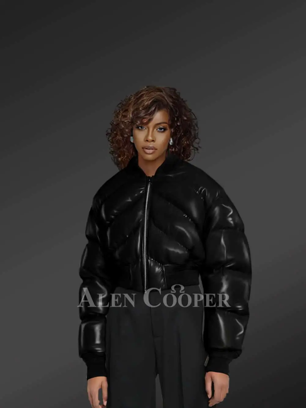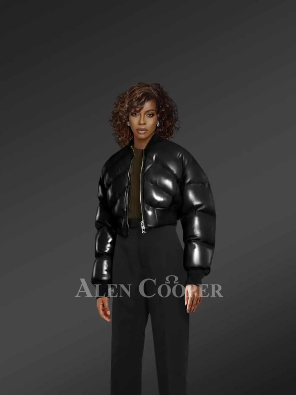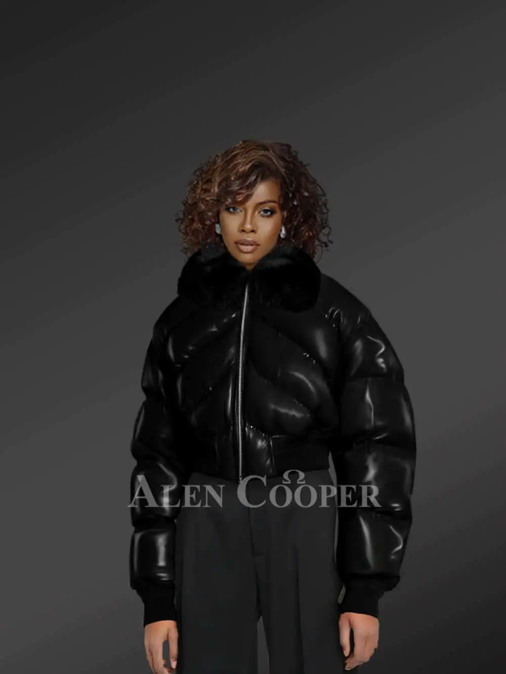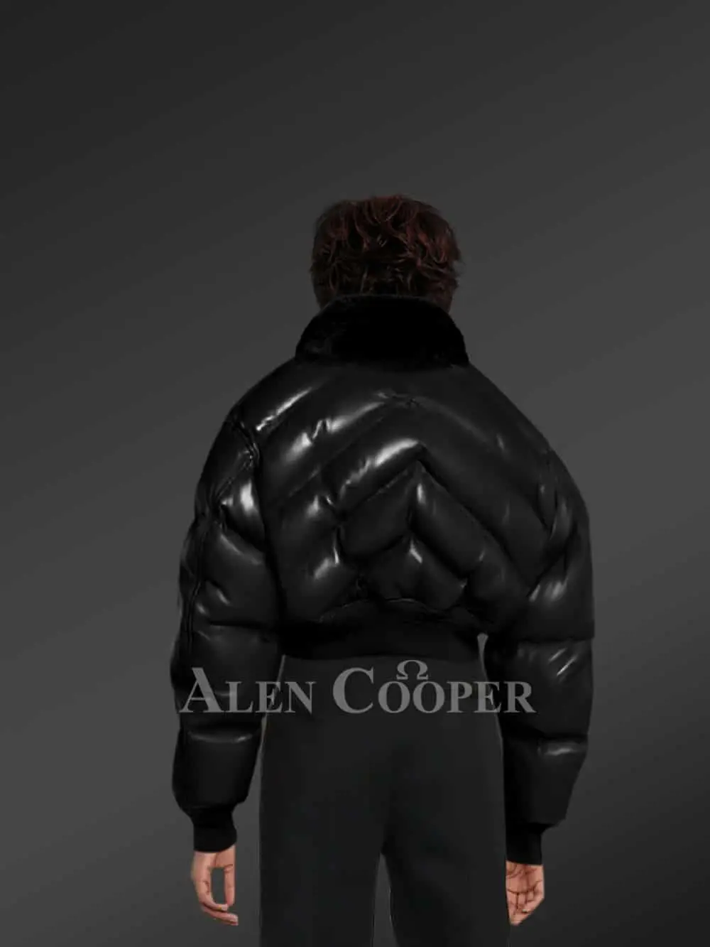 This Leather Fur Bomber requires minimal care and maintenance. The item range ensures value for money. Overall, the Fashionable Winter Wear, Highlights your Rich Taste and Sophistication. This Black Leather Bomber Jacket is a must have collection in your wardrobe. The main charismatic appeal of this Bomber is the puffy down design format dictating the body, sleeve and also the backside of the jacket. Guarantees a perfect fit for all, it is available in different sizes too. A must buy for all.