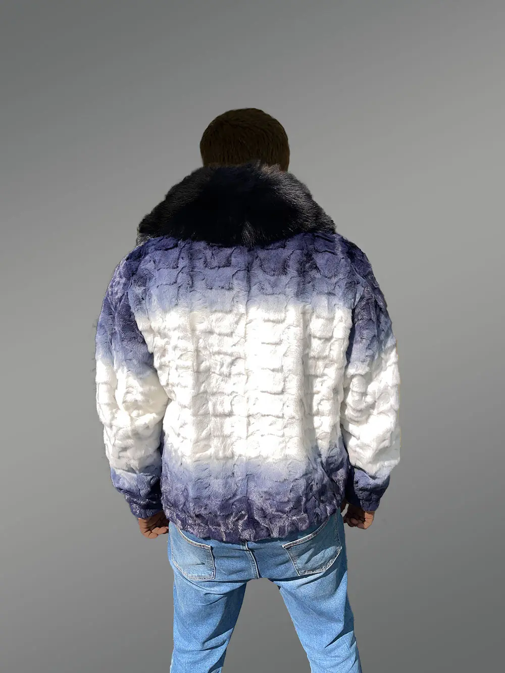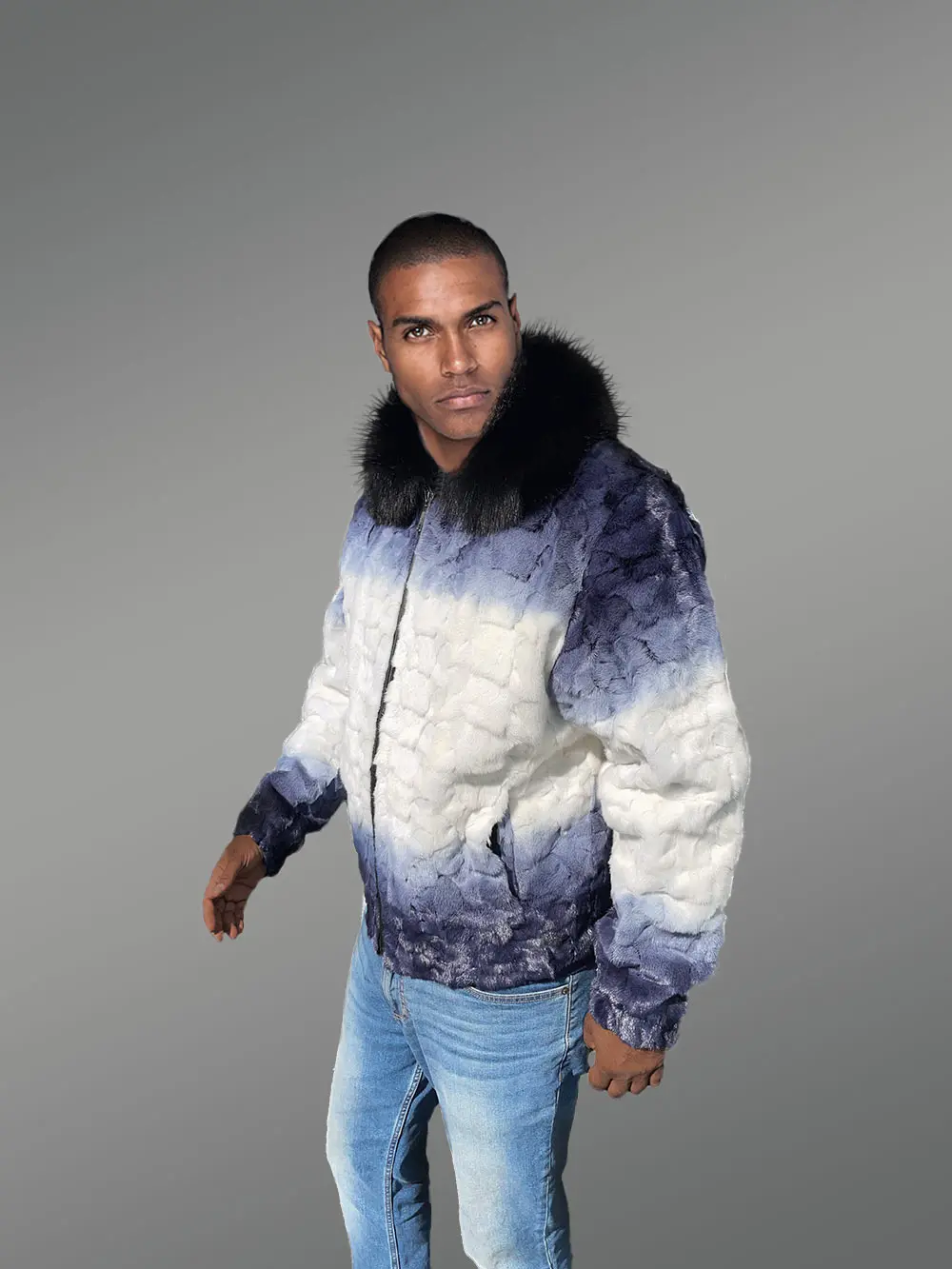 This Men Mink Bomber Navy Dual Color is lightweight yet warm. The long sleeves are ideal to provide warmth to your hands. The thick, warm & small mink fur pelts are stitched together to form a format design. The shades in this jacket are navy blue, which becomes lighter in the shade while descending down & at the middle, it becomes milky white. The pattern of colours is then reversed from the middle point of the jacket till it reaches the waist. The same pattern of shades is seen on the sleeves. You can try this great style this winter.