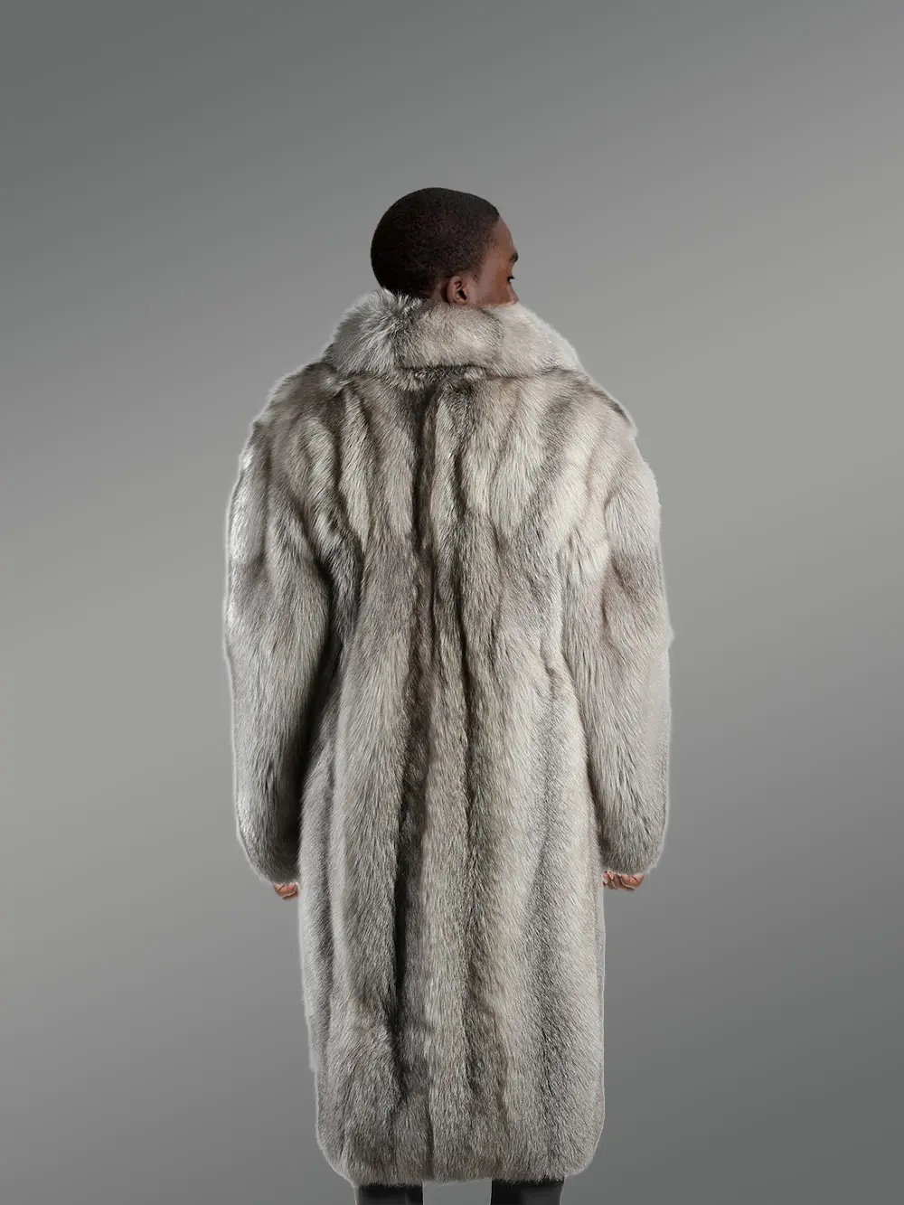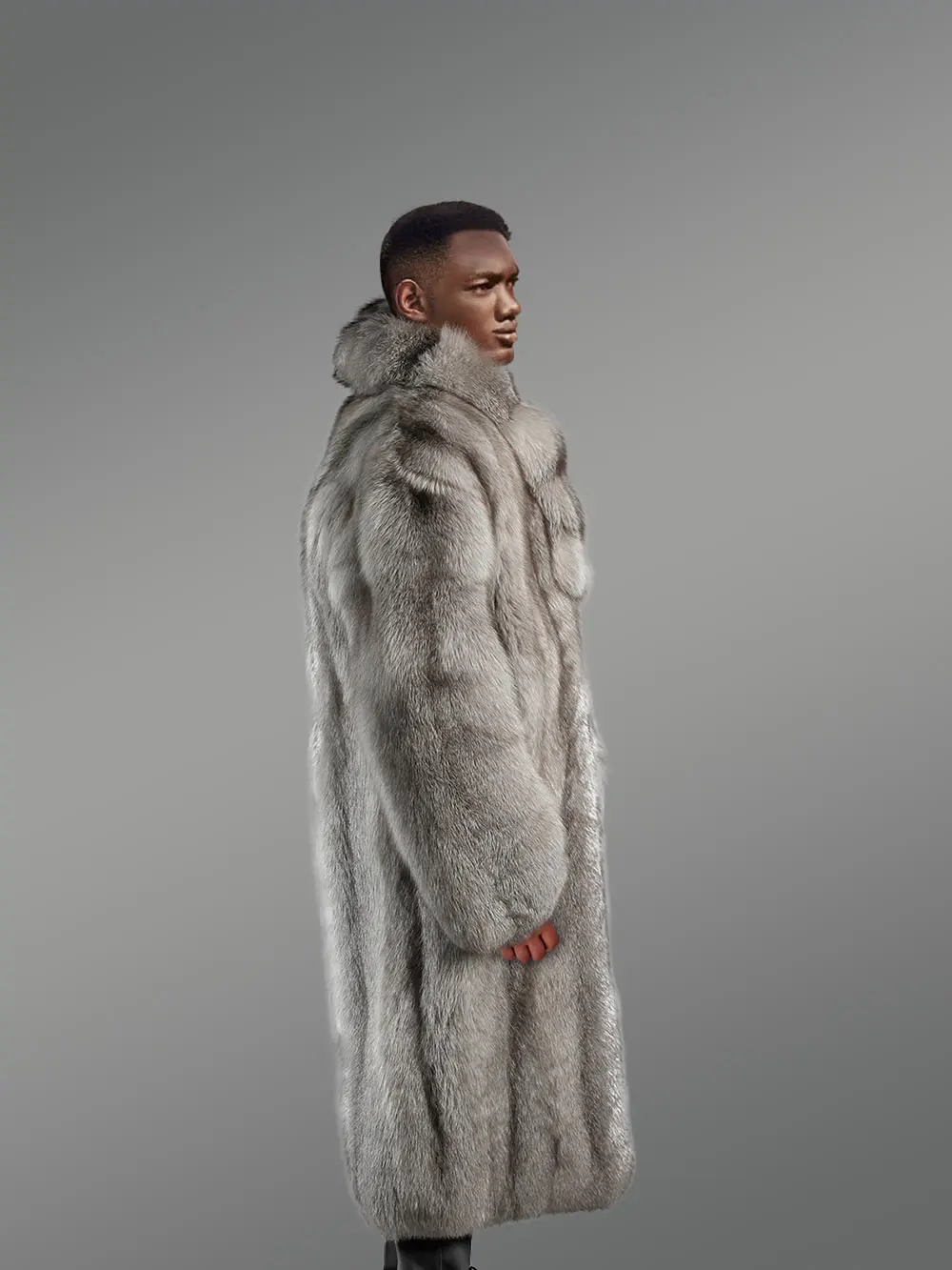 This luxurious mens blue fox fur stroller is indeed the epitome of sophistication with its regal charm. At the same time, one can bask in the unparallel warmth and comfort of fox fur after wearing this coat. It has been designed by gifted furriers using the full skin pelts of Blue fox fur. Therefore, it works like a shield against the cold air in winter months and keeps one comfortably warm. The breathable and lightweight fox fur also keeps one comfortable in spring and autumn seasons. This long coat will undeniably be an outstanding addition to one’s posh collection of winter-outfits.