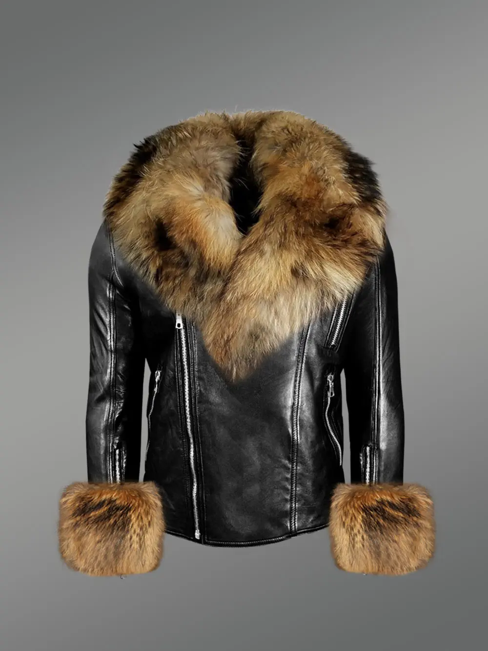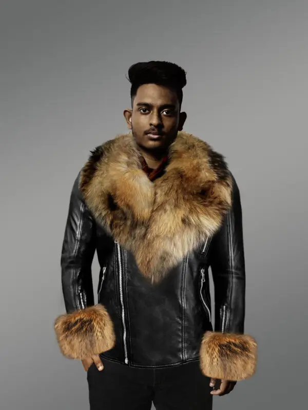 This plush jacket is designed for greater style, warmth and coziness this winter. The innovatively designed product range smartly blends leather with fur. The jacket is made from original plates of the premium variety Italian-finish leather whereas the collar, lapel and handcuffs are made of authentic plates of Finn raccoon fur – one of the costliest varieties of the fabric that exist under the sun. The plush winter dressing item is exceptionally soft and supple in texture other than being very lightweight. The stylish jacket radiates unparalleled charm and sophistication rightly belongs to a completely different class of its own. Lots of creative ideas and innovative thoughts went in product range designing. As one of the latest examples of authentic Italian designing you can easily the appealing version of men’s leather jackets as a proper dress and can even attend different types of social gatherings or parties in it. The chic item guarantees perfect fit for everyone without considering your height or physique.