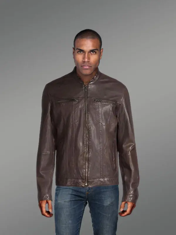 Men’s Coffee Moto Leather Jacket