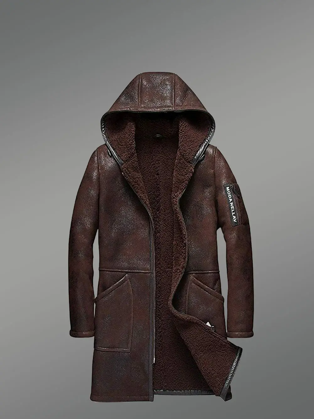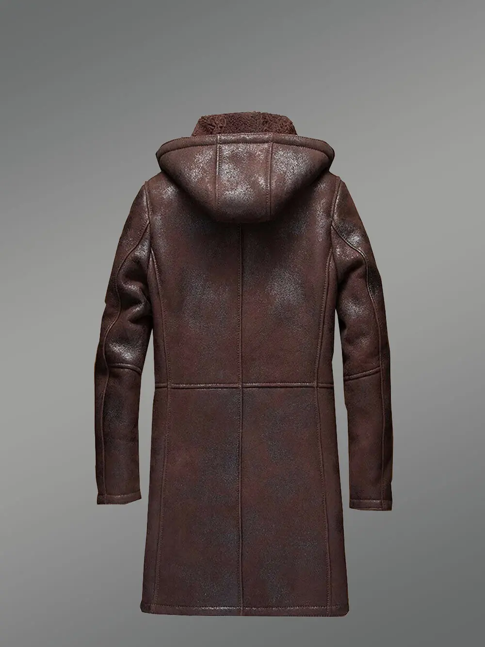 Mens Long Brown Shearling Coat for a High-Fashion Look