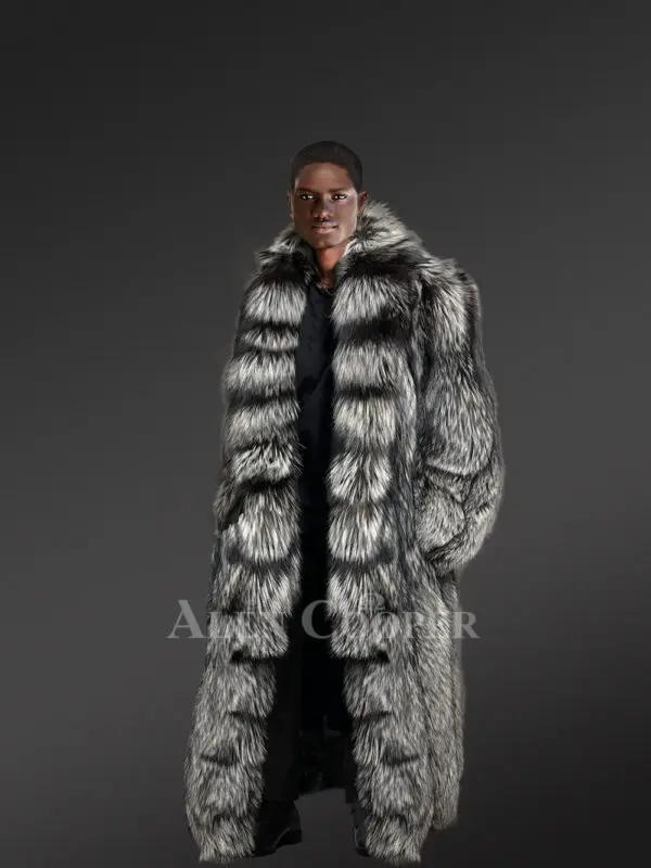 Mens Long Silver Fox Coat with Frontline for High Fashion Looks