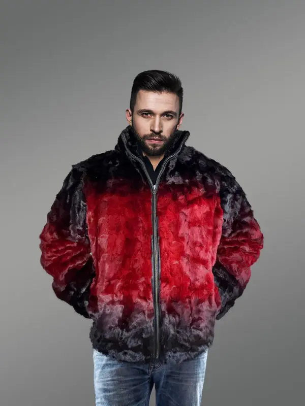Without a doubt, this mens mink bomber with hood is a head-turner because of its impressive aesthetic features. The vivid burgundy looks outstanding when paired with the black and makes this outfit look stellar. Owing to the finest quality mink fur, this jacket feels extremely soft to the touch. Furthermore, one can wear this lightweight outfit throughout the winter and bask in its pleasant warmth.