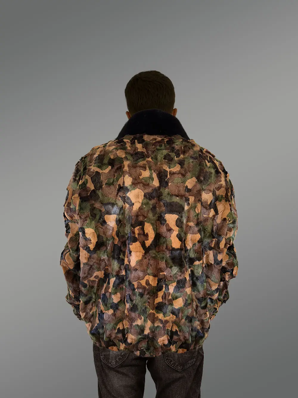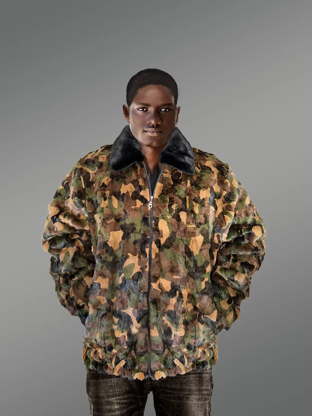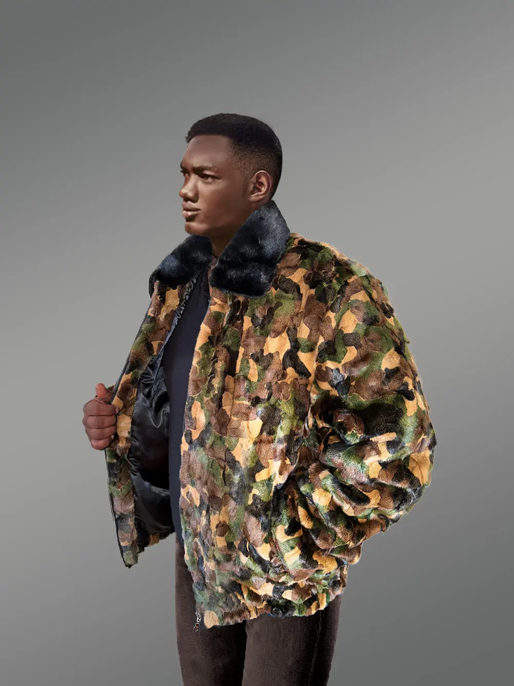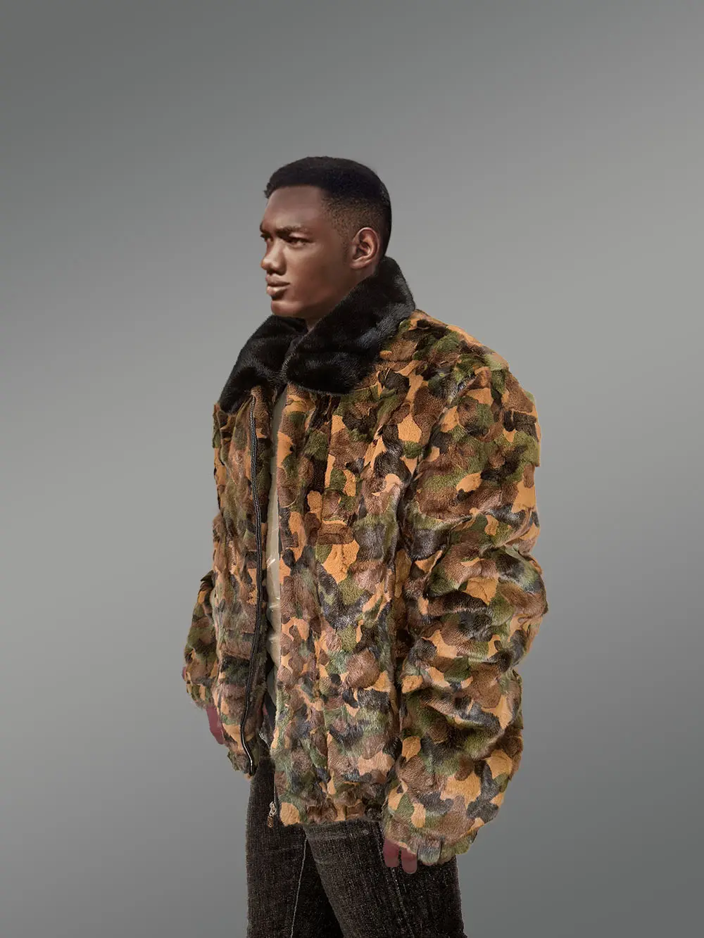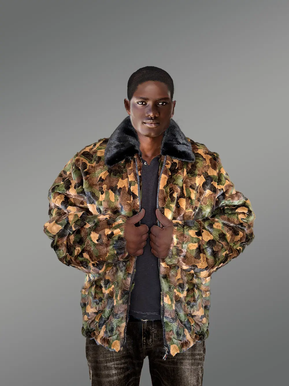 Mens Camo Mink Fur Jacket with Trendy Looks & Features