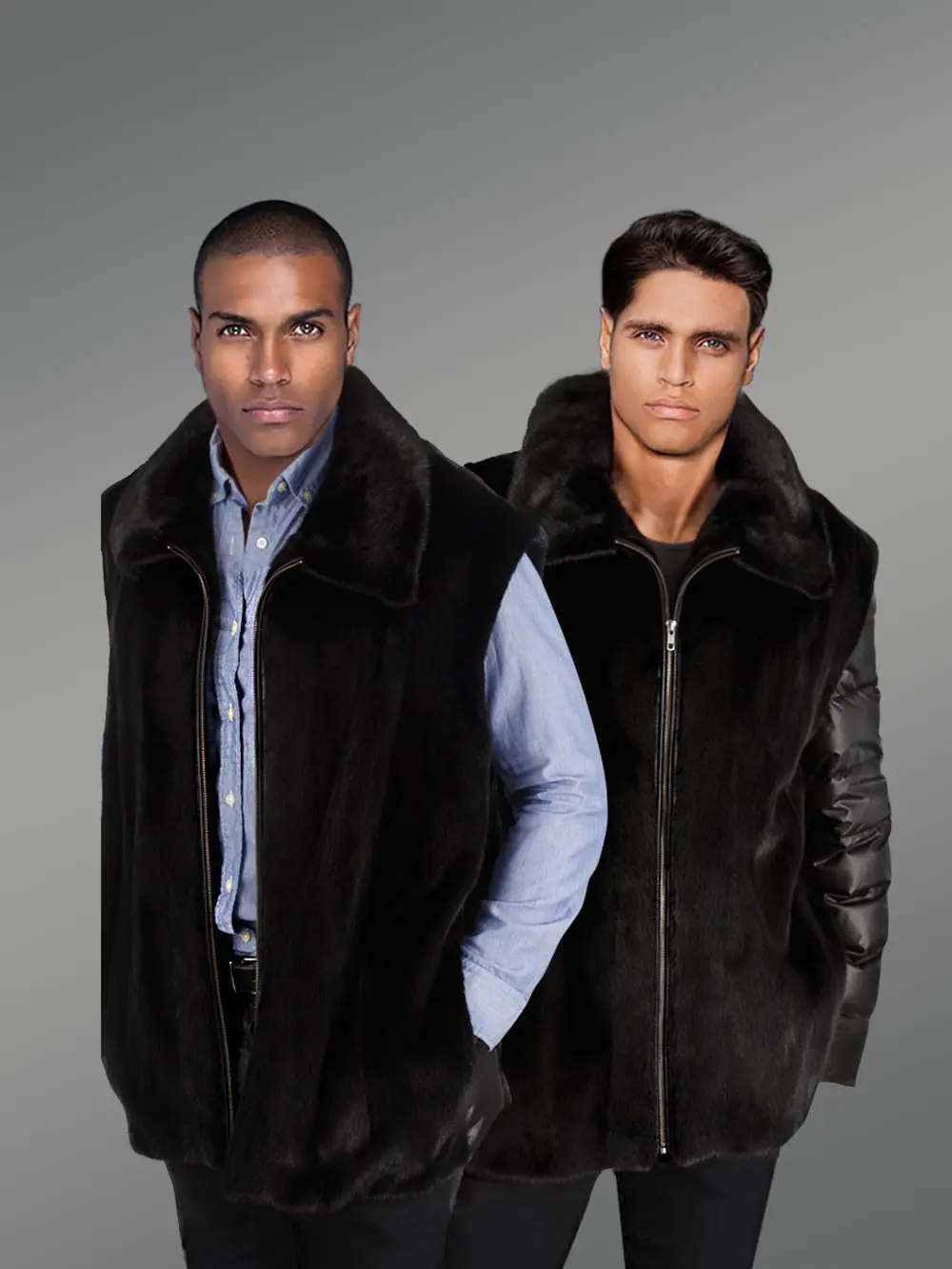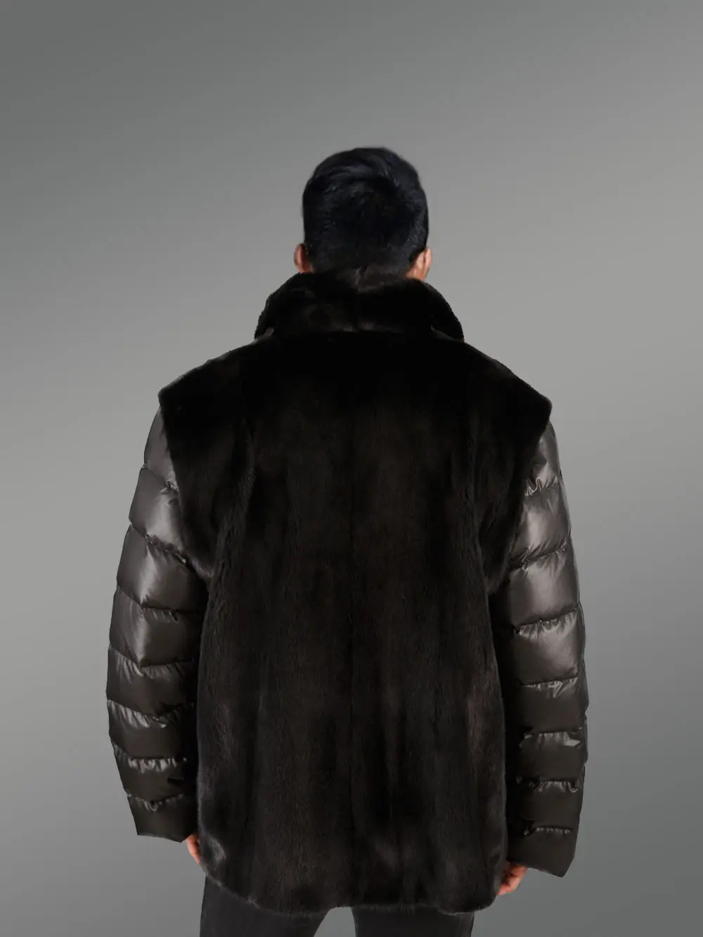 Men’s Mink Jacket with Quilted Sleeves and Mink Vest