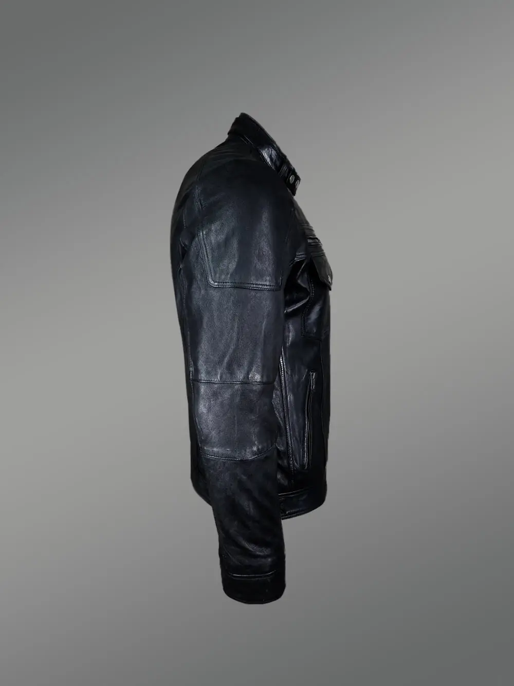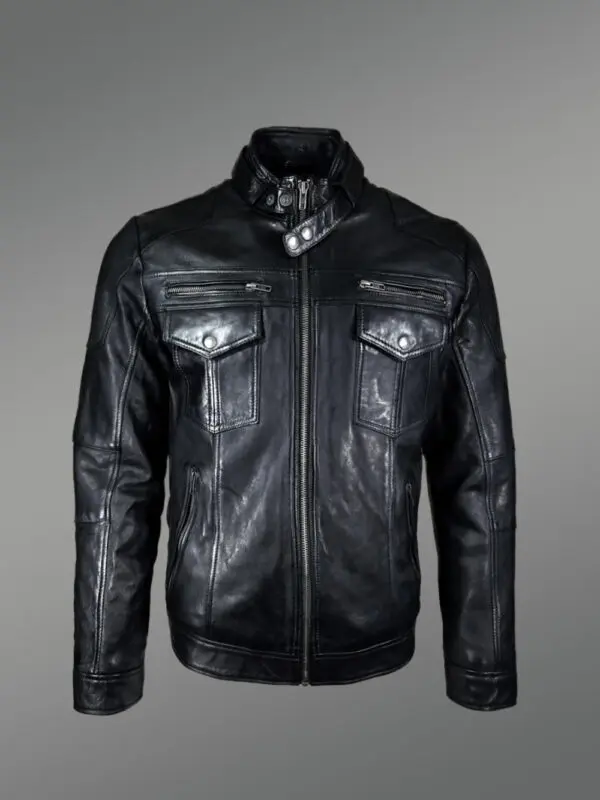 Storyline- leather jacket may sound like a firm and protective outerwear as it was crafted for adding protection to the military men during the First World War. With the days rather decades, fashion has changed itself for a lot of times, nowadays, people seek soft and sober look in a leather jacket. And this leather jacket is the best example of that. Here a firm stand collar keeps the wearer’s neck straight. In other words, it can be said that this style was crafted to let the wearer have a casual look with a more confident feeling inside.