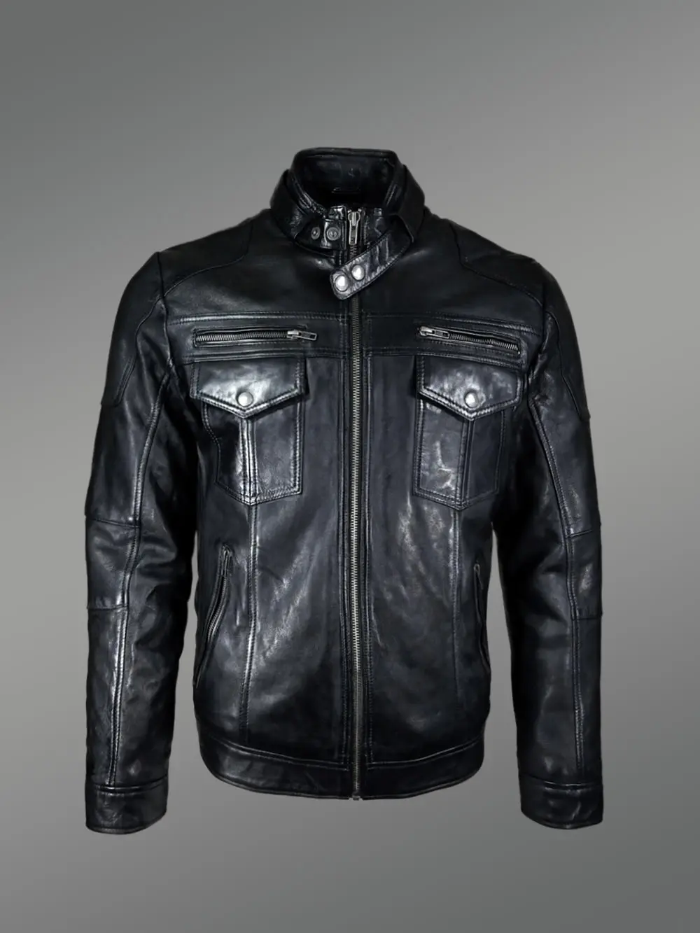 Men’s Moto Biker Jacket with 2 Patch Pockets In Front