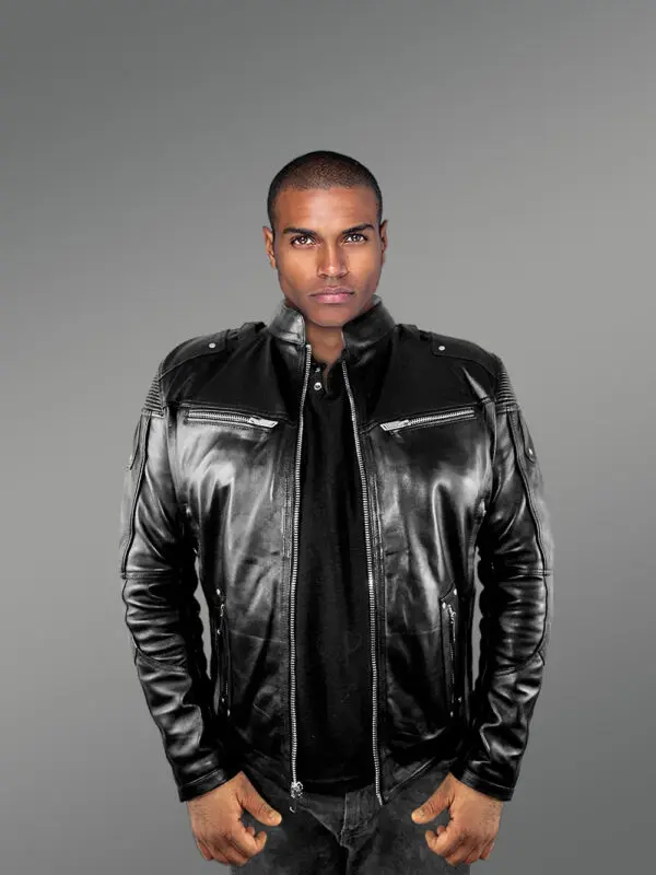 Mens Moto Leather Jacket in Black