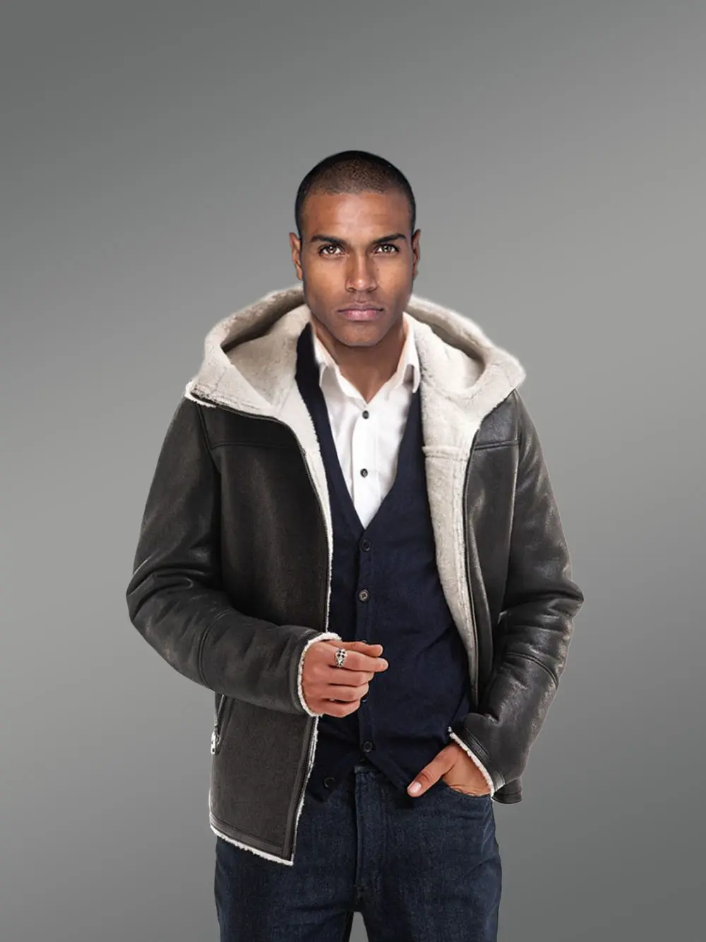 Men’s Real Stylish Shearling Jacket in Black is Chic & Comfortable Outfit