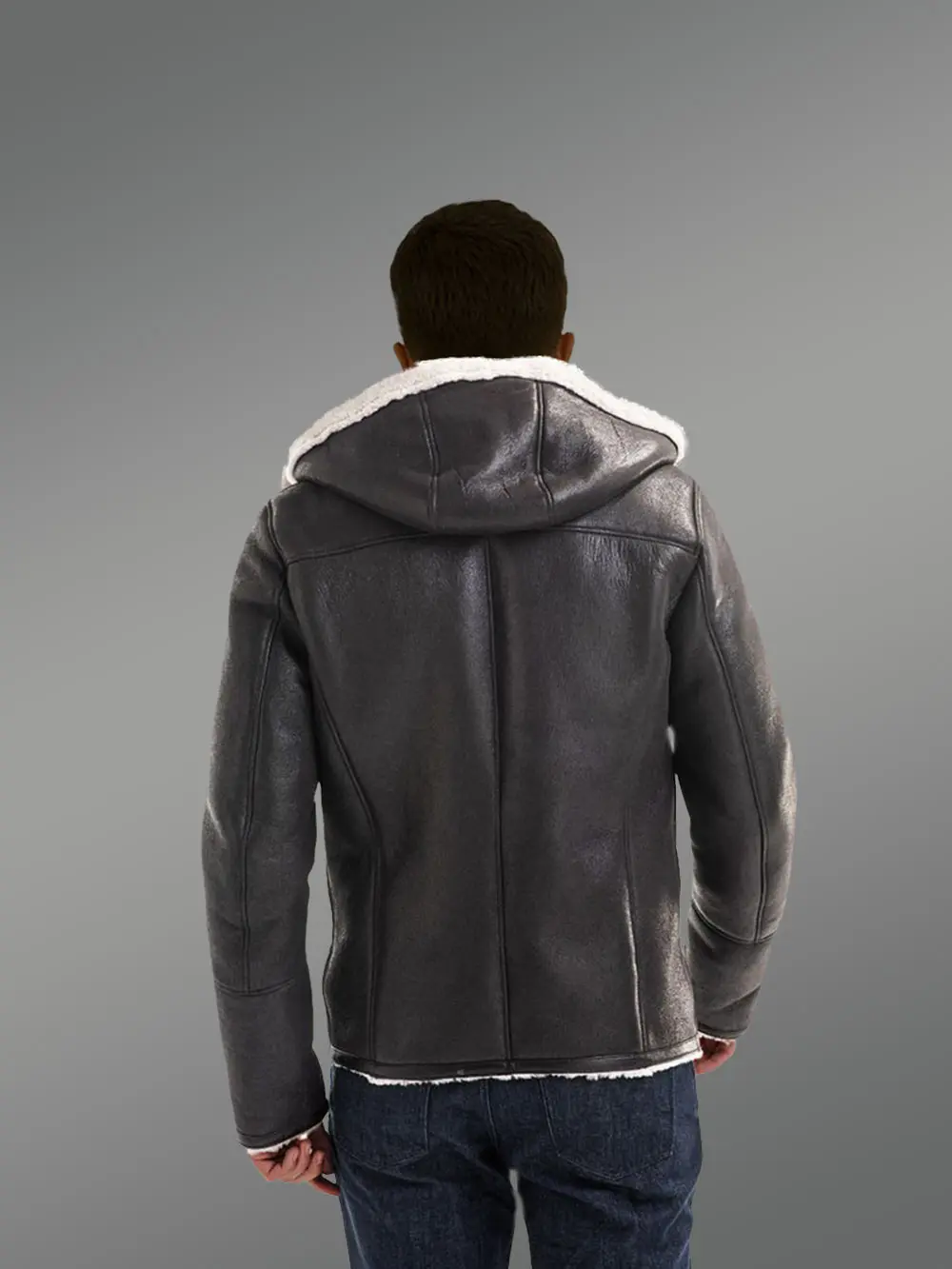 The spacious side pockets in this shearling outfit have metallic zippers as closure and open slightly in a slanted way in a vertical manner. All the zippers used in this jacket are of premium quality chrome-finished metallic zippers. The pockets are small storage spaces for keeping the hands warm when the temperature goes down. The prominent stitch marks or the seam lines in this outfit are at the back. The shoulder, sleeves and hood create a different design that enhances the style.