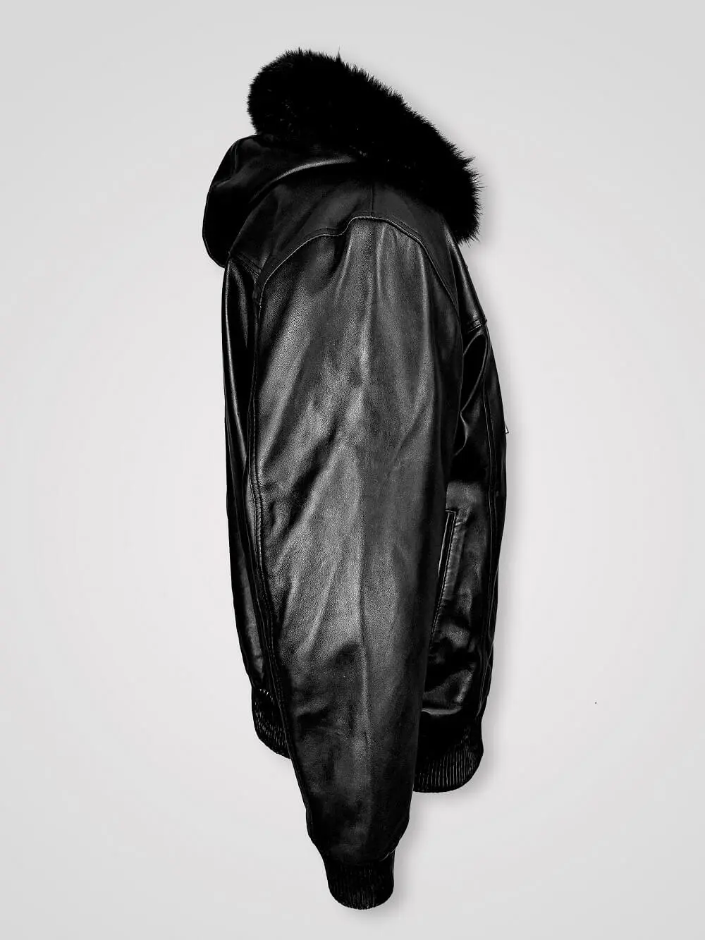 Men’s Zipout Hooded Bomber with Fox Fur Trim