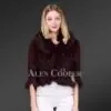 It has a lightweight structure yet a durable character, making its usability a plus for the wearer. This mink fur cap shaped jacket features deluxe fox fur trimming in a stunning dark brown hue. The fur trims adorning the thick round collar run down through the lapel line and then join the bottom line. The furry trims also accentuate the short-sleeved ends and the hemline, crafting a unique style for women. The hidden hooks seamlessly lined modishly provide insulating closure to the wearer. Women can pair this cape jacket with linen or leather pants and even semi-formal trousers for a glam party or fun event.
