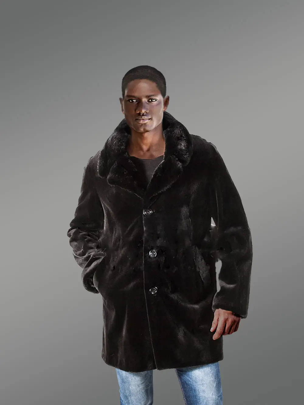 This Mysterious Black piece is made up of Genuine Quality Mink peltswhich is highly popular in fashion industry for its warmth and durability. The Sheared Mink Fur has a soft, dense texture and is extremely luxurious. The attire has a Hood with Full Sleeves to provide you warmth in frosty winters. This 3/4th Length Coat has a formal as well as casual look withtwo hand warming spacious straight pockets in each sides. It has Large Buttons and Eye-Holes as a closure and is fully lined with Premium Quality Silk Lining for extra comfort.