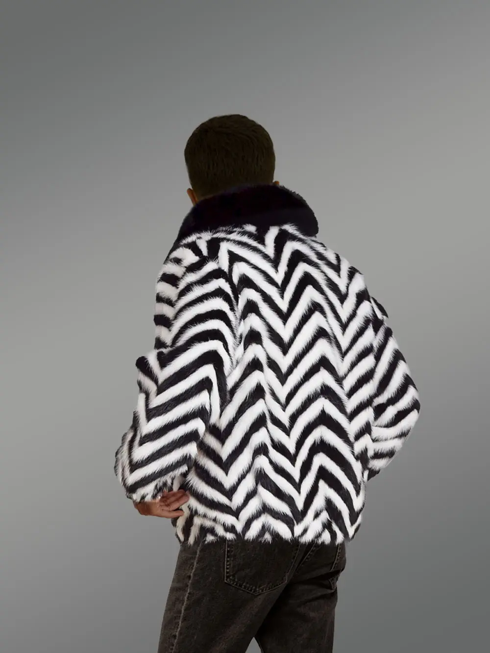 This Mink Jacket With Black Fox Collar for Men exudes elegance attributable to the original fur from mink tails. Generic furred winter-wear is famed for being lightweight and so this compact coat causes no discomfort despite being worn for a longer period. It is designed with a contrasting zebra pattern all over the body and certainly looks trendy with the fascinating distinctiveness of black and white color scheme.