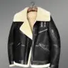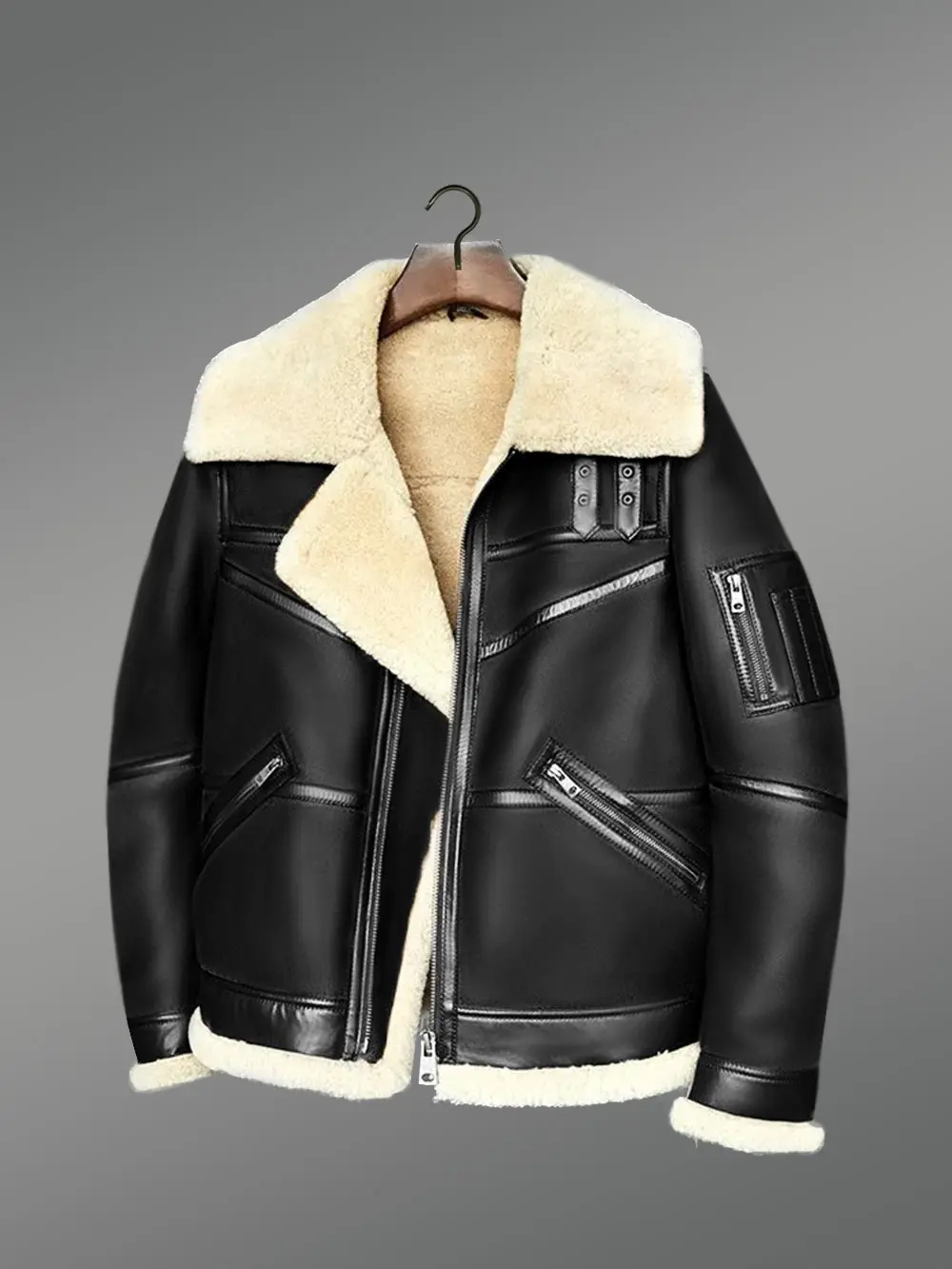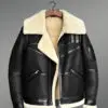 Moto Style Shearling Black Jacket With Double Collar Belts