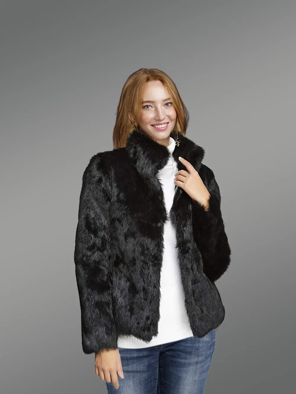 This season, take advantage of Furrik’s new line of quirky rabbit fur jackets. Beautiful, eye-catching, genuine Black Rabbit Fur Jacket for Women is the pinnacle of your style. The fur jackets in this line are all meticulously handcrafted. The product line is developed with considerable ingenuity and innovation. A well-designed product line successfully displays your smart fashion sense.