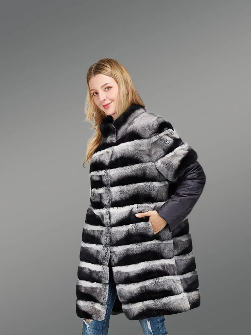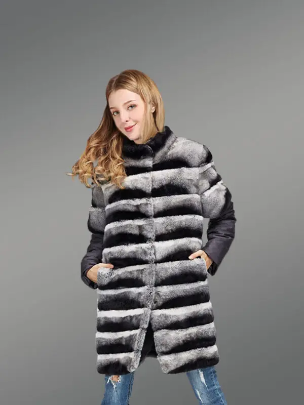 Natural rabbit fur accounts for one of the fur categories to maintain the most lavish feeling. Therefore the outerwear is skilfully created with genuine Rex rabbit fur. It is significantly valued for its silky touch. Furthermore, on the higher end, satin fully lined on the interior creates an ideal mix to distinguish the coat as opulent and authentic. The fur’s paragraph texture is rather unique, adding to the attraction of the rex rabbit and contributing to a luscious aspect. Blackish and grey shades emerge as the most enticing appeal attributable to the fur pattern.