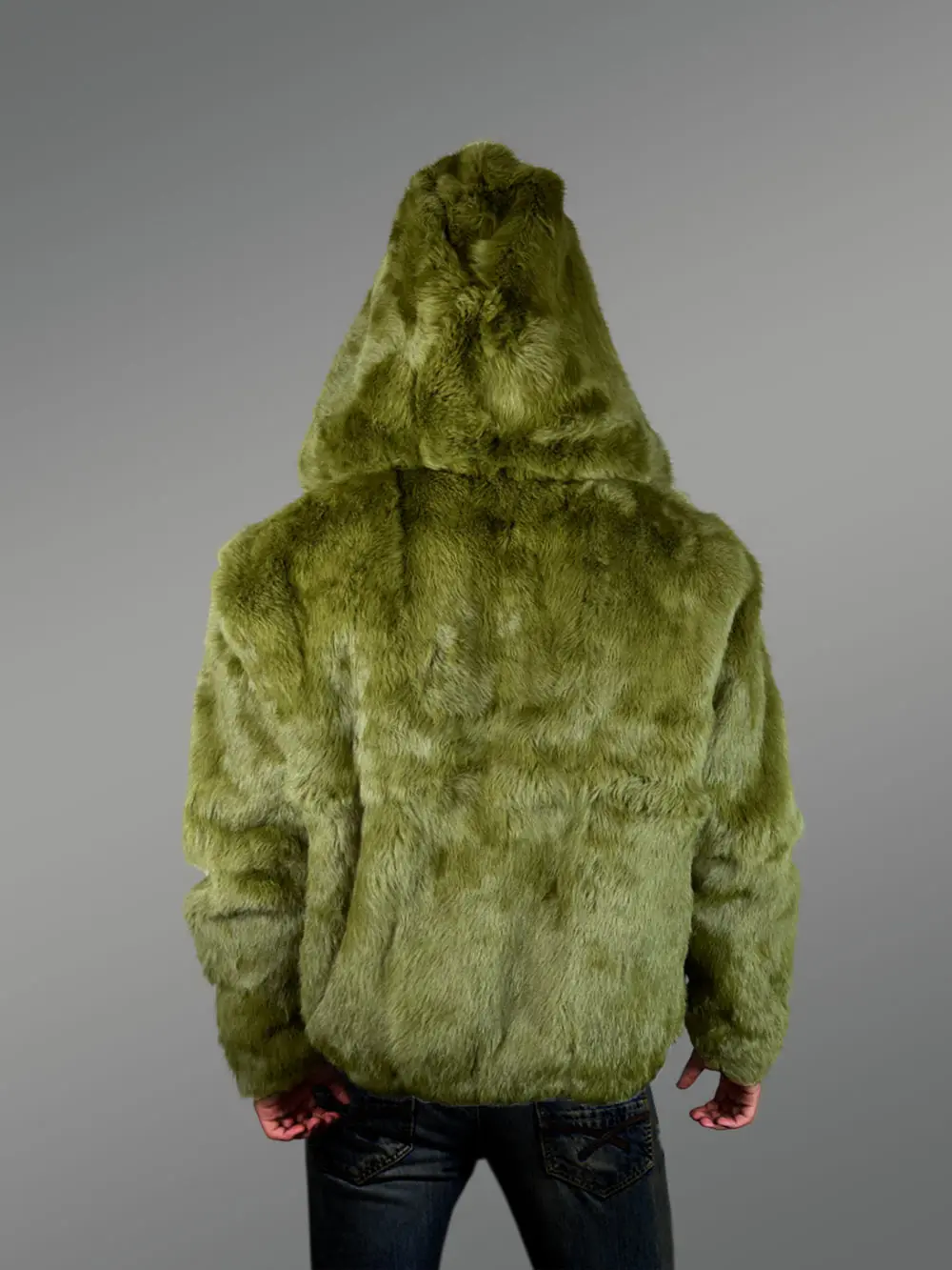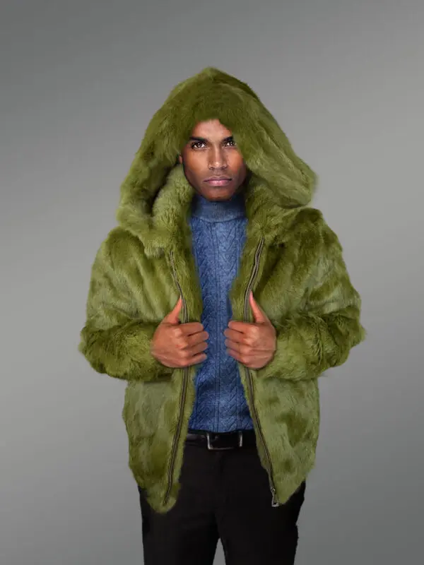 Men’s Authentic Rabbit Fur Coat in Olive