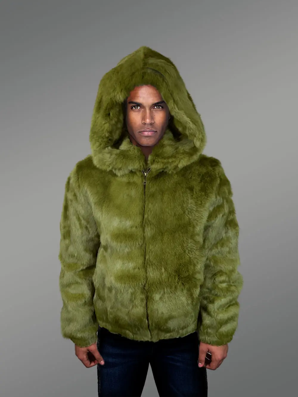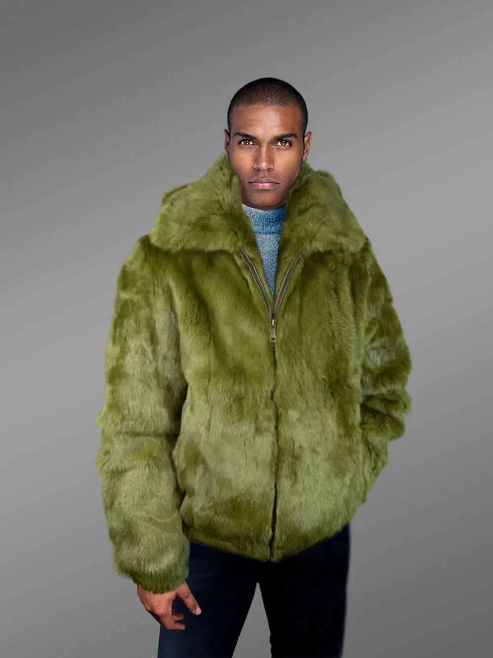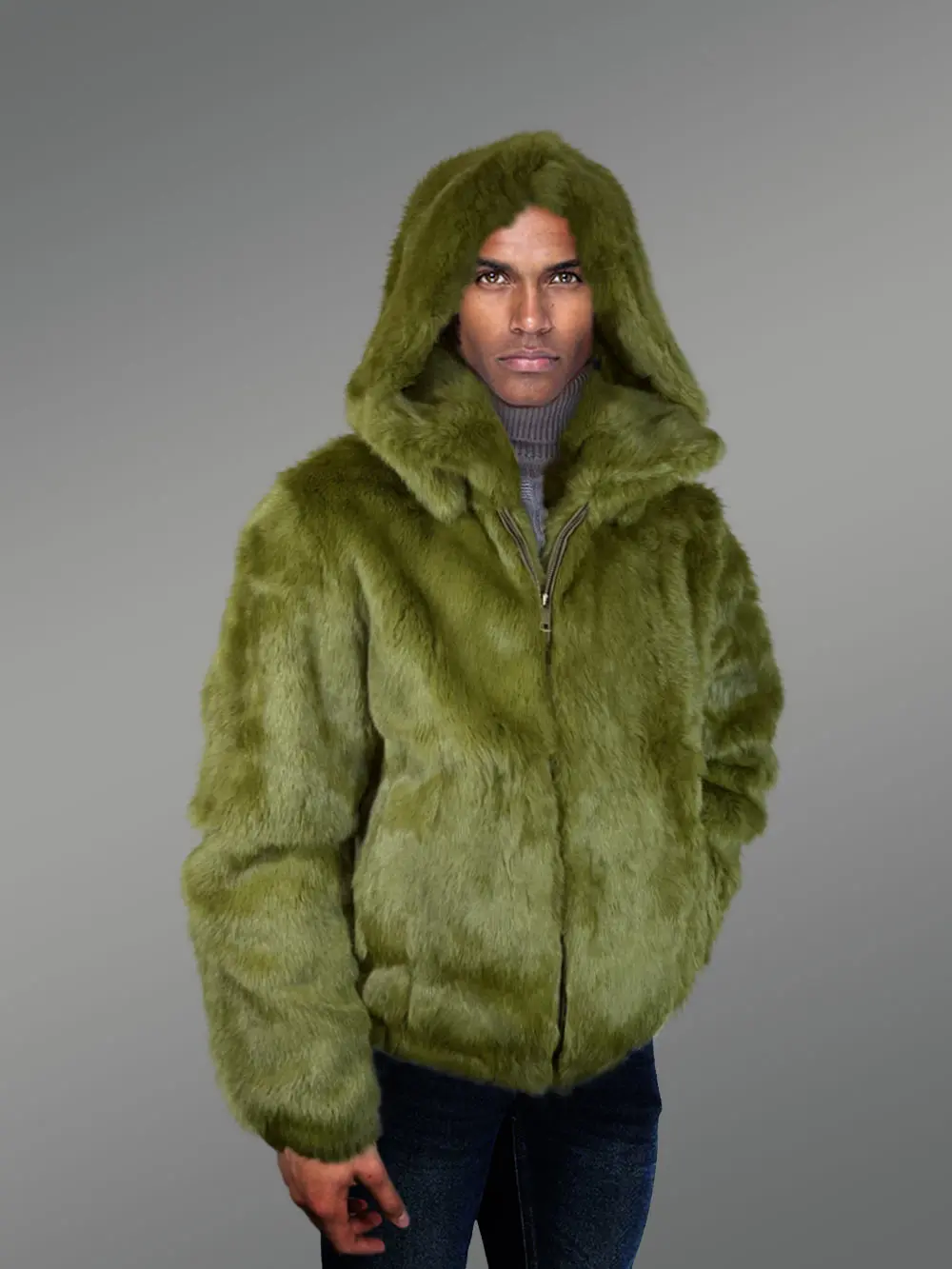 Take advantage of Furrik’s new beautiful, eye-catching, real Olive Rabbit Fur Coat with Pure Satin Interior for Men, which is being introduced this winter. The fur coats in this collection are all handmade. The product line is created with a great deal of creativity and innovation. A cleverly designed product range effectively communicates your sophisticated taste in fashion-related subjects.