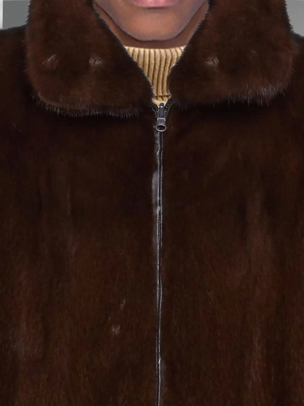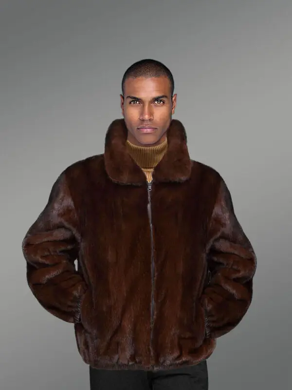 Full body flexible-fit shapes for ease and comfort. The brown-on-brown elegant winter wear casts a classic appearance on men’s fashion. Standardized collar made of semi-full skin mink fur on both sides is an added glory and luxury.