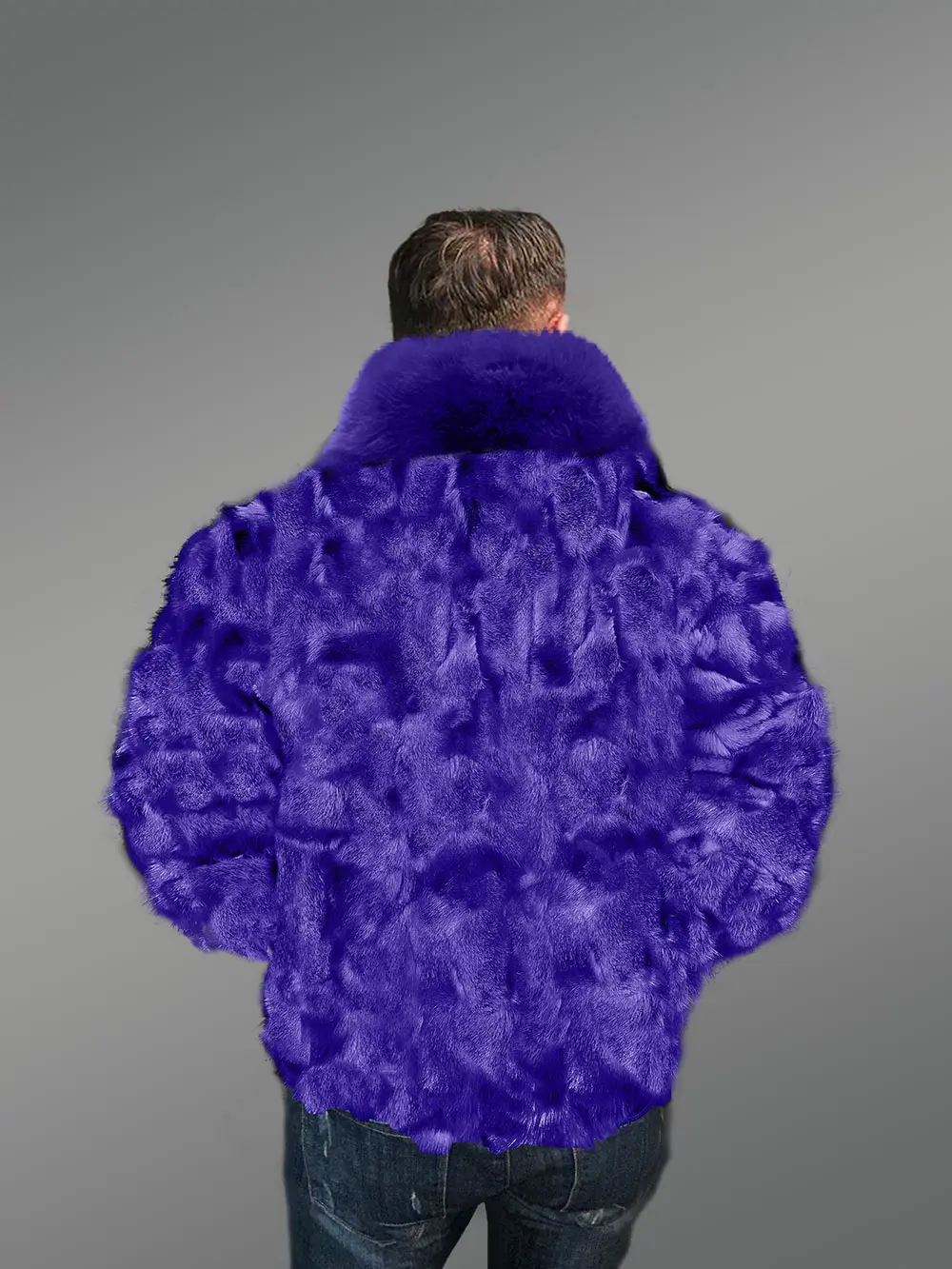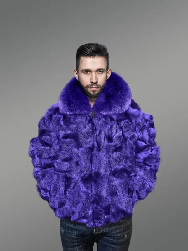 With greatest artistry and advancement, the fox fur bomber style jacket strikes the current trend. It features zippered front and voluminous collar.