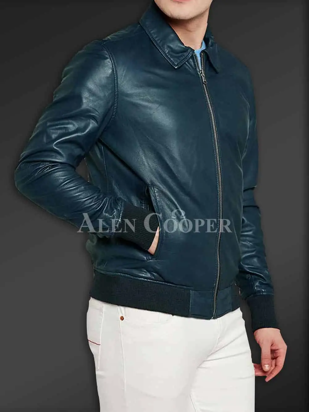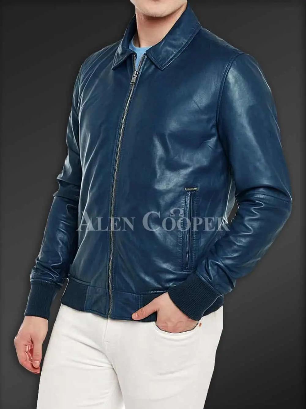 Description: Men purely believe in ‘simple yet elegant’ style and to match that vibe Furrik is here with its amazing super smooth real leather jacket for men in navy blue. Long sleeves with elasticized wrist closure, straight zipper closure, slim side pockets, and overall smooth texture are the main attributes here. In order to beat the cold with full-on style, try this affordable pure leather jacket this time!