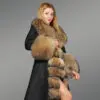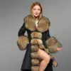 Sheepskin Tuxedo Shearling Coat for Women with Raccoon Fur