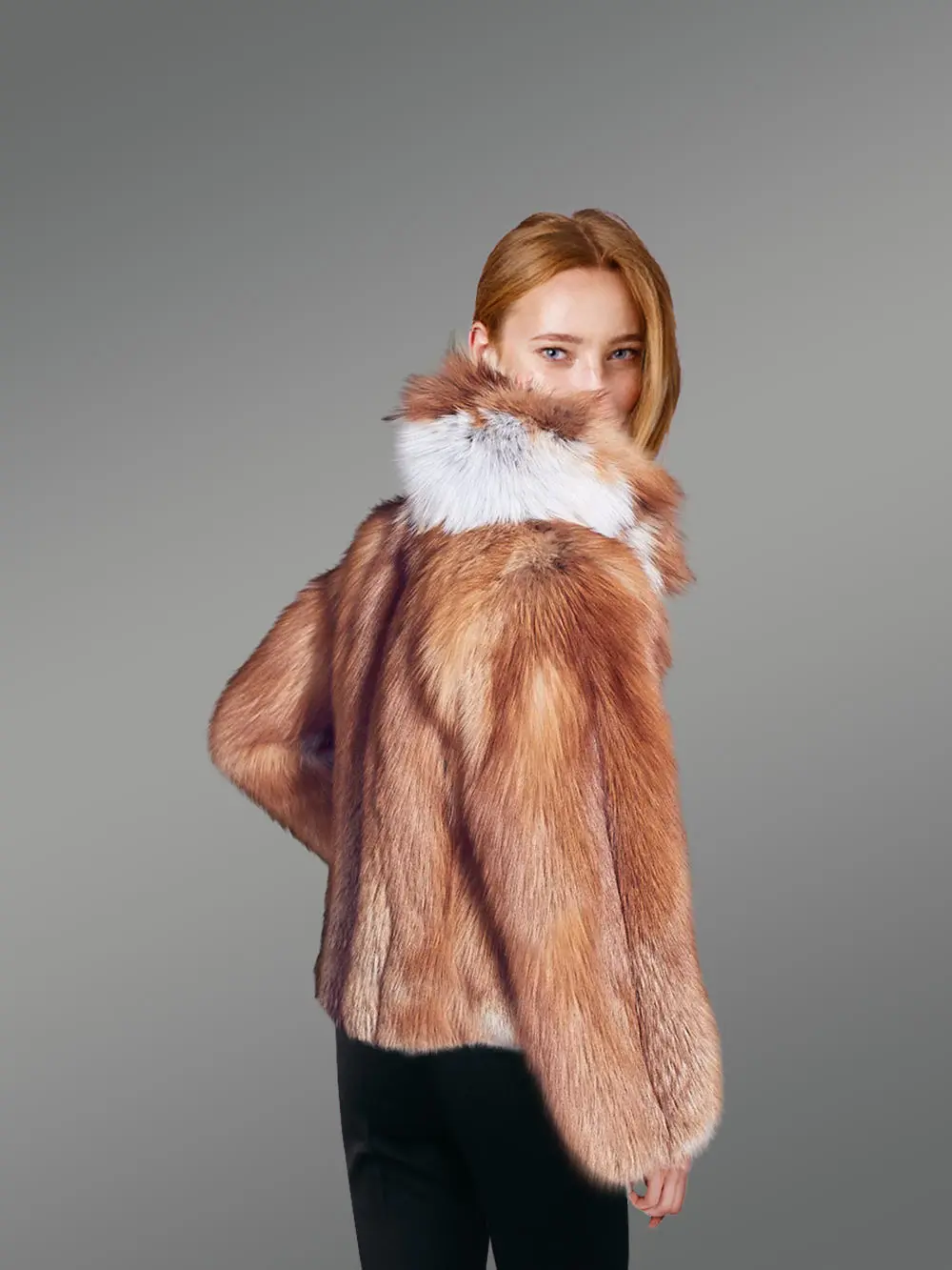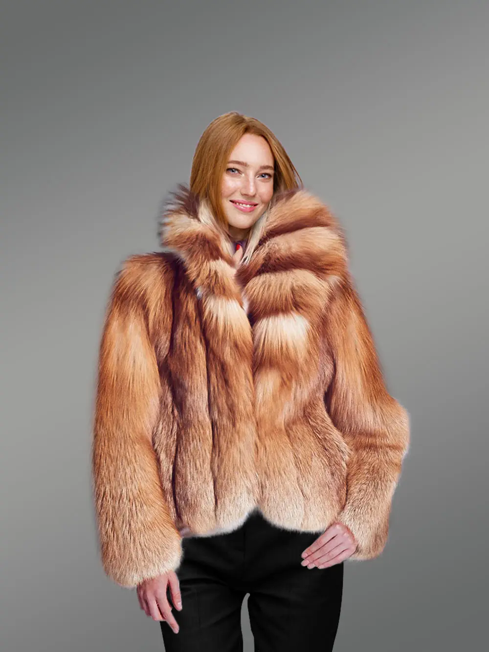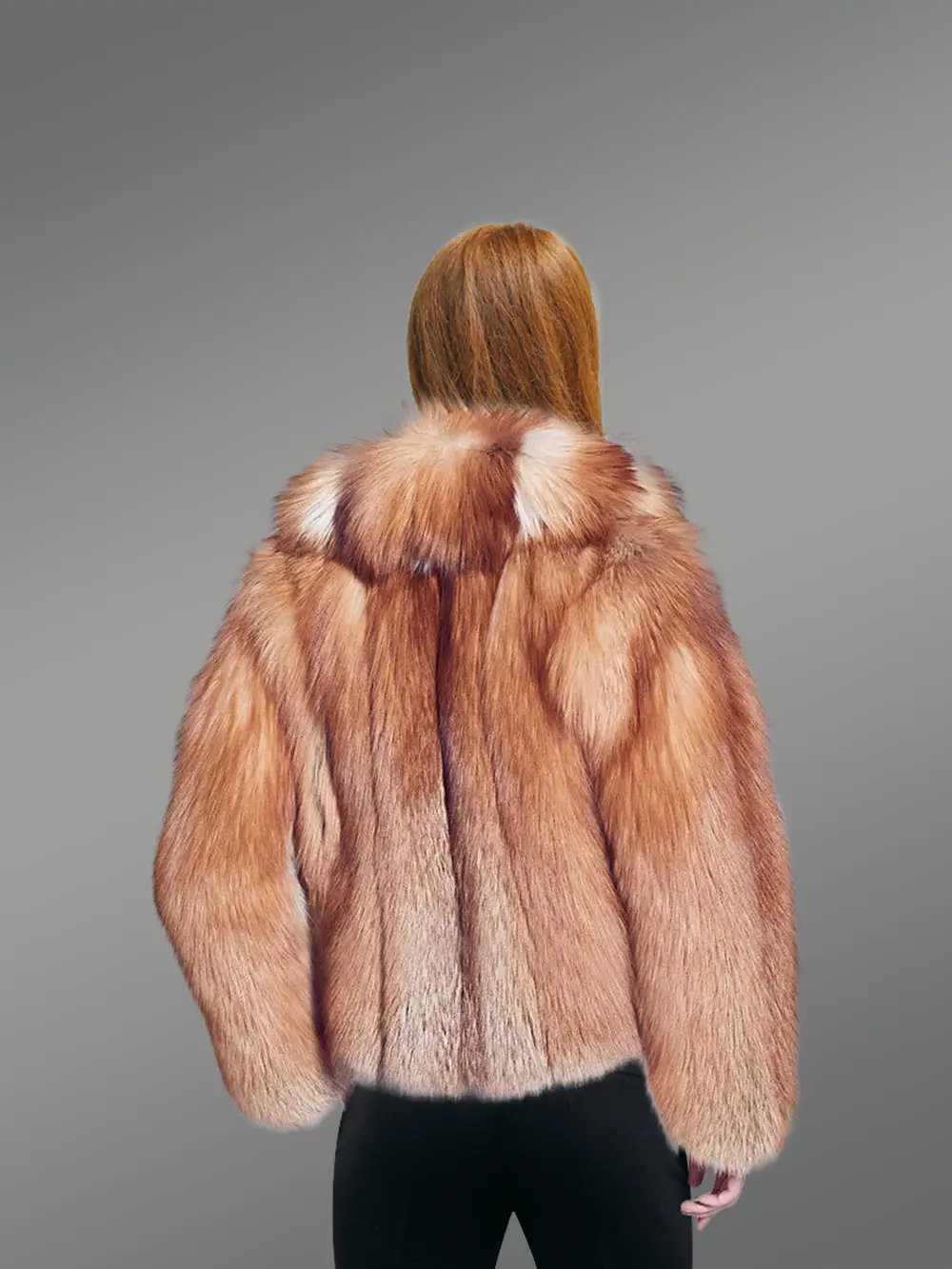 This elegant fox fur womens coat is certainly a winter essential. It looks bright carrying the natural fur which exudes the unparalleled color scheme of Red Fox fur in natural finish. Owing to the dense down, this jacket can keep one warm throughout the winter season. Its luxuriousness results from full skin pelts of fur. Because of the premium quality of the fur as well as the processing technique, they look lustrous and feel markedly soft on the skin.